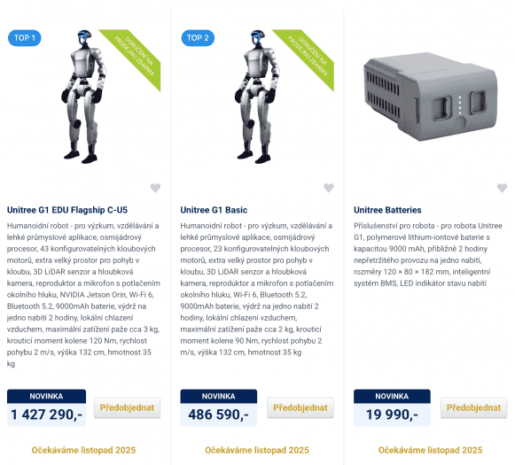 Největší tuzemský e-shop rozšiřuje portfolio o zajímavou položku – humanoidní roboty. V minulosti takto experimentovala například s elektromobilitou, kdy do své nabídky přidala automobily Tesla i dalších značek. V případě humanoidů se prozatím zaměřuje na firmy a vzdělávací segment, kam chce roboty Unitree distribuovat od listopadu.