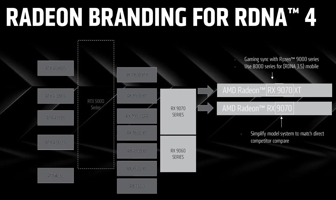 Zatímco v keynote Radeony nedostaly místo, separátně byly zveřejněné slajdy a nějaké informace z prezentace, takže určité poodhalení nastalo, jen ne živě online. Potvrzeno je použití architektury RDNA 4, ale zatím není řečeno moc konkrétního. AMD potvrdilo, že čipy této generace používají 4nm proces oproti 5nm čipům architektury RDNA 3 s 6nm MCD čiplety (výjimka je Navi 33 v řadě 7600, to je celé 6nm).