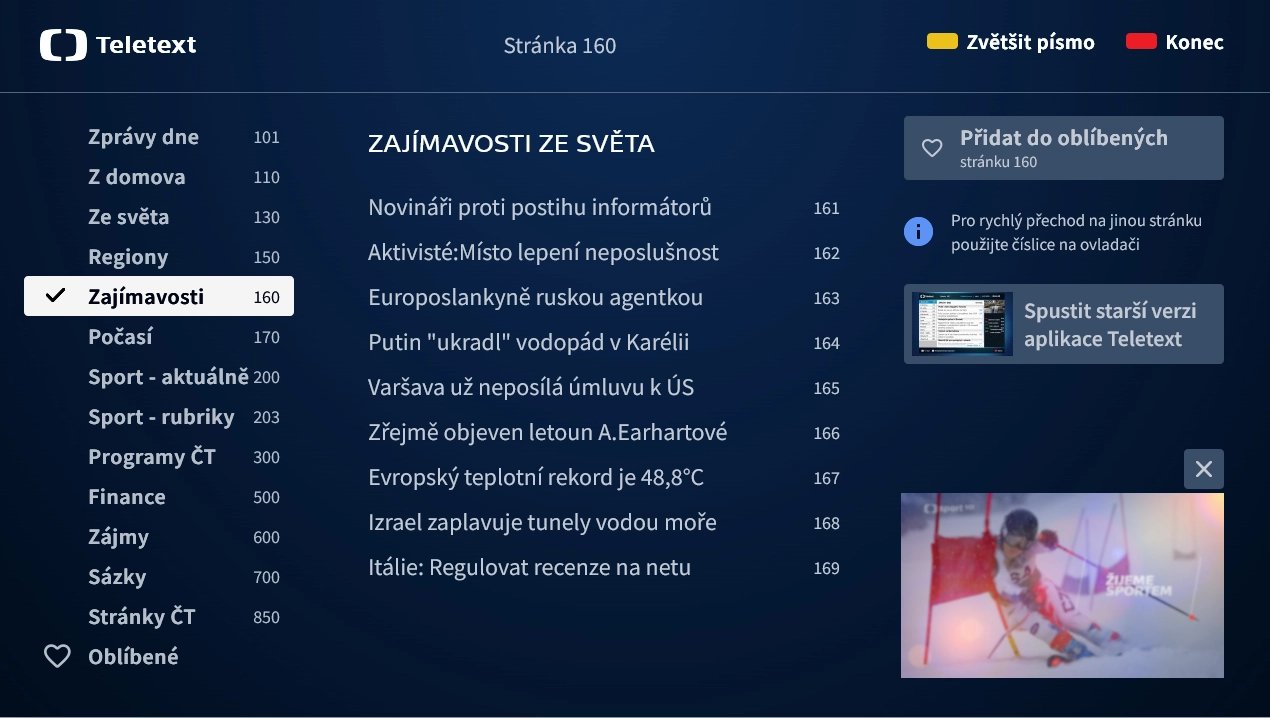 „Teletext byl první aplikací technologie HbbTV v České republice, kterou Česká televize vysílá už od května 2012,“ vysvětluje produktový manažer televizních platforem Jan Zeman a dodává: „Díky této technologii i teletext získává nové uživatele. V současné době využívá tuto formu prezentace teletextových dat cca 50 až 60 tisíc unikátních uživatelů. Počet zobrazených stránek činil jen za prosinec loňského roku 3 miliony 886 tisíc. To jsou klíčové důvody, proč Česká televize přikročila k inovaci klasického informačního zdroje i v moderní technologii HbbTV.“