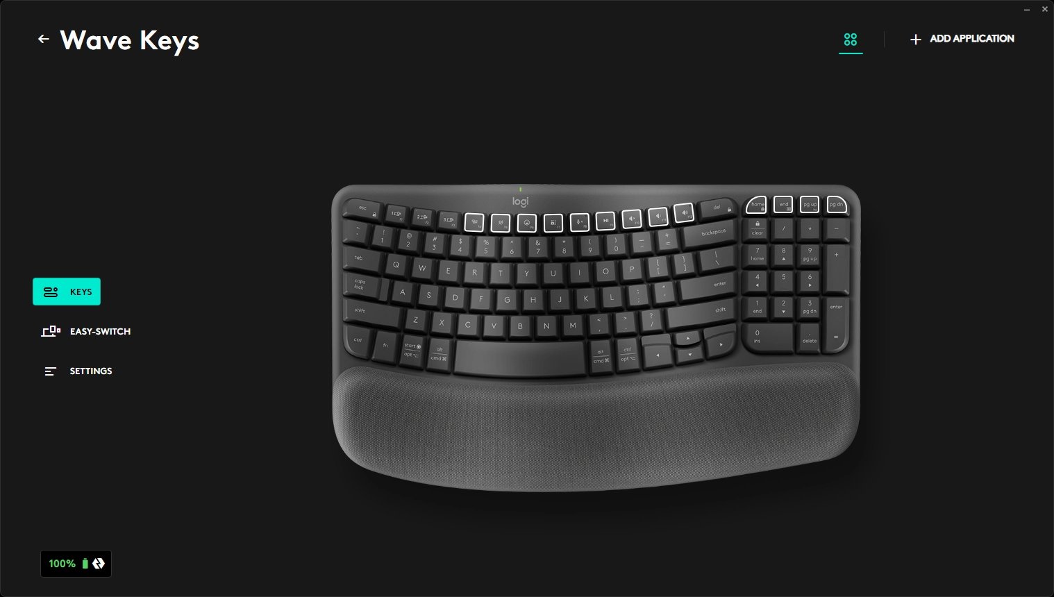 Wave Keys je bezdrátová klávesnice s numerickým blokem, ovšem bez středové části. K počítači ji připojíte přes USB dongle, případně Bluetooth. V prodeji je ve třech barevných provedeních: grafitová, krémová a růžová. Logitech se chlubí velkým podílem recyklovaných plastů a nejvíce ekologická je v tomto případě černá varianta.
