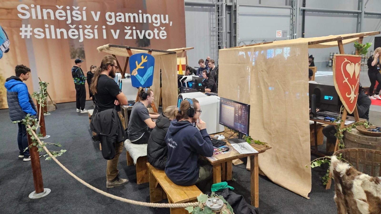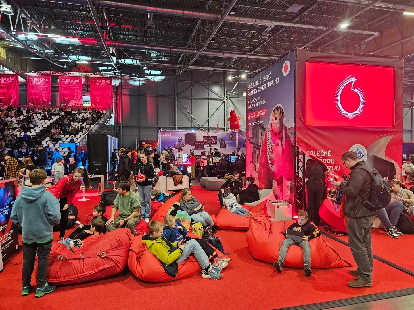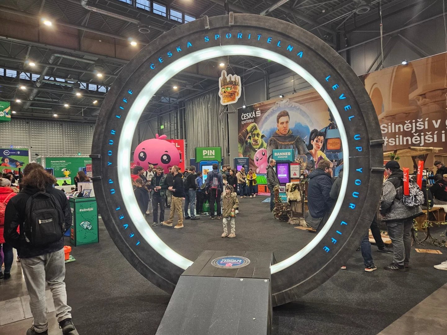 Česká spořitelna přivezla hvězdnou bránu a herní koutek s počítači Alienware a velkým lákadlem: nainstalovanou hrou Kingdom Come: Deliverance II. Vodafone nabízel posezení v červených polštářích a hraní na konzolích. U Samsungu byla opět povedená atrakce ve formě laserových překážek.