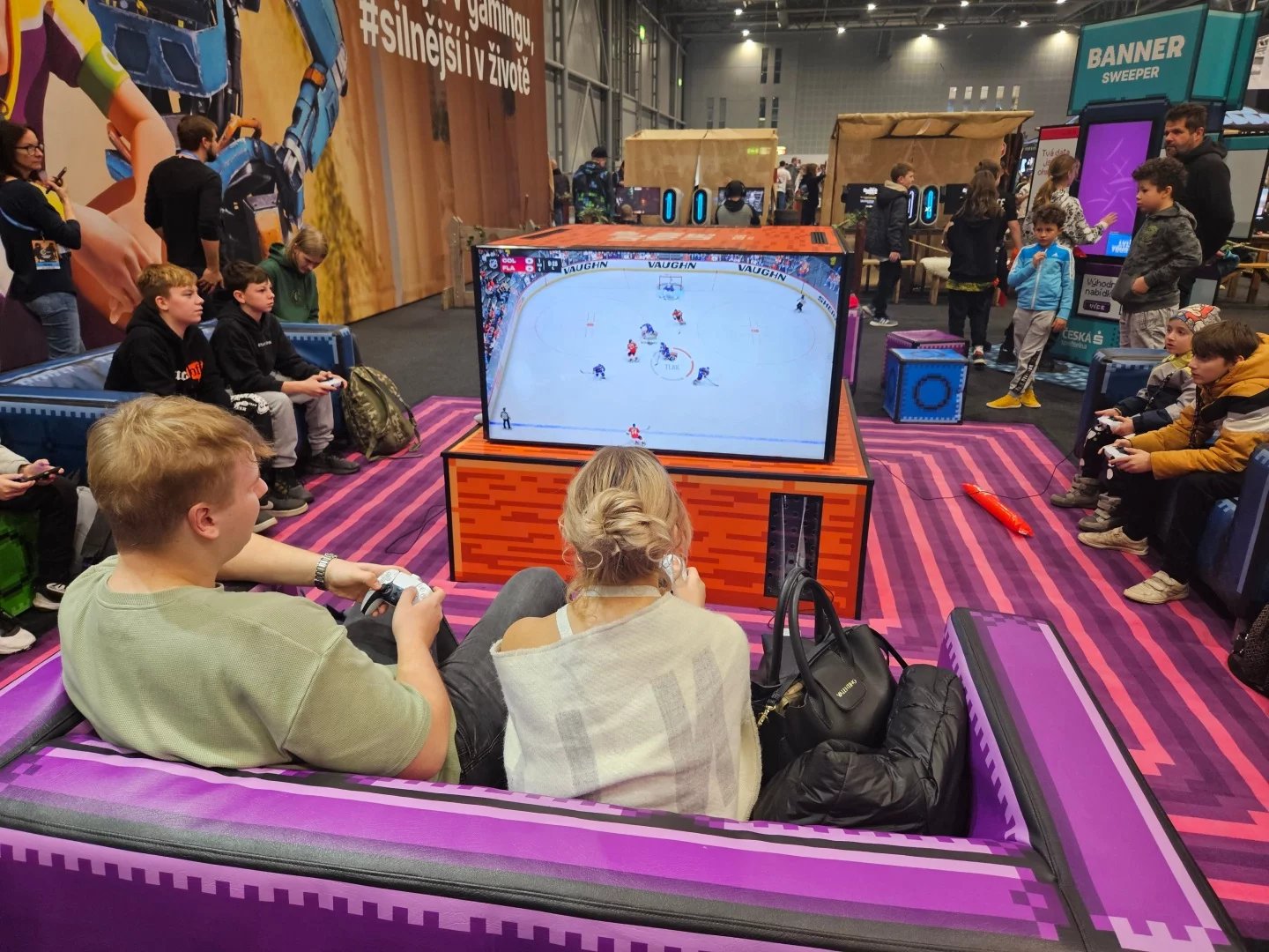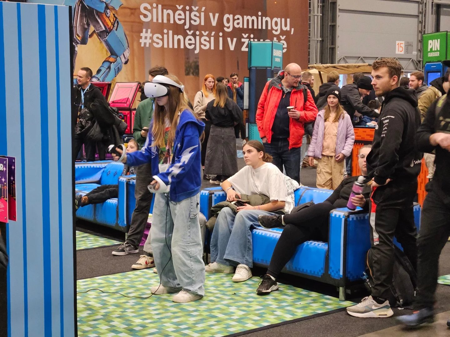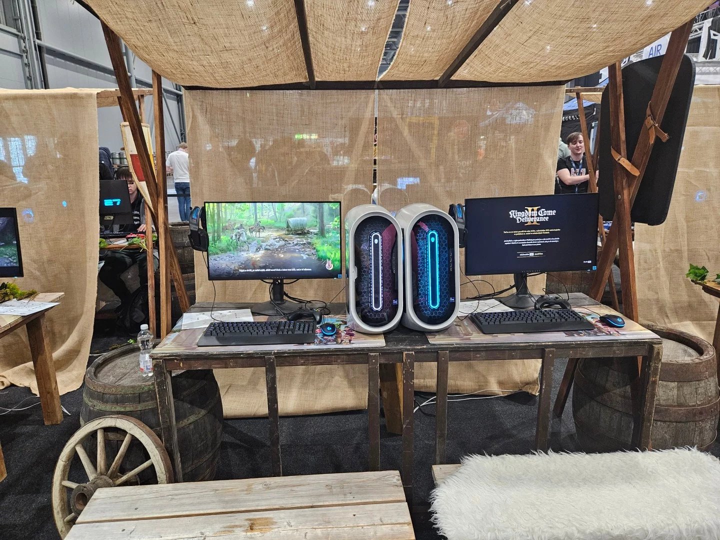 Česká spořitelna přivezla hvězdnou bránu a herní koutek s počítači Alienware a velkým lákadlem: nainstalovanou hrou Kingdom Come: Deliverance II. Vodafone nabízel posezení v červených polštářích a hraní na konzolích. U Samsungu byla opět povedená atrakce ve formě laserových překážek.