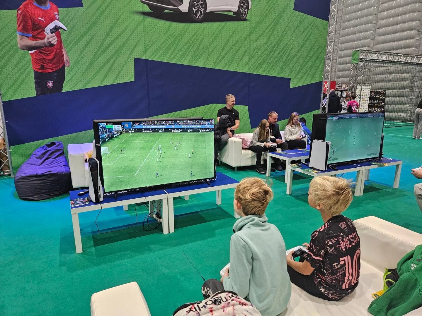 Hyundai jakožto hlavní partner fotbalového turnaje tu měl gauče a Playstationy s FC 25. Herní konzoli pak u něj šlo také vyhrát. Fotbal zde ke hraní na svých obřích televizorech nabízelo také TCL. Výborná zábava byla u fotbalové stěny Puma, kde jste ve dvojici museli zasáhnout tu správnou obrazovku.