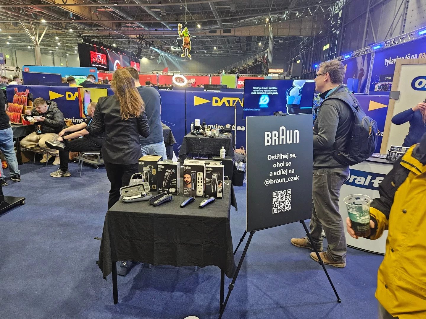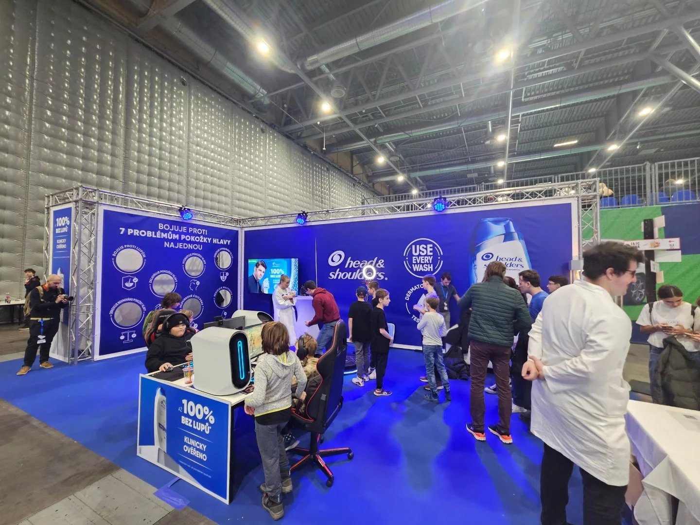 Některé patří jen mezi partnery akce a chtějí zaujmout novou generaci, jiné třeba přímo sponzorují esportový klub. Procter & Gamble zde měl hned tři stanoviště, kde se značkou Gillette sponzoruje klub Enterprise (v Counter-Strike 2 skončili letos pátí), u Braunu vás zadarmo profesionálně ostříhali s jejich nejnovějšími strojky a u Head & Shoulders jste mohli vyhrát šampon, když se trefíte prázdnými šampony na cíl (a opět si něco zahrát na počítačích Alienware). Zkrátka taková kompletní péče o porost hlavy počítačového hráče.