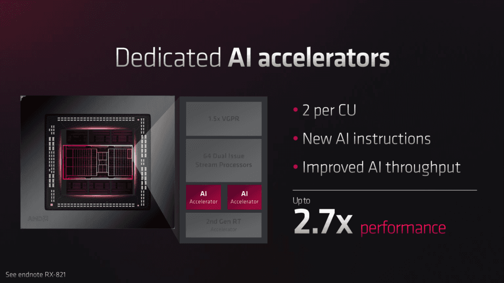 Možná se ptáte, o jaké akceleraci je řeč, protože v GPU Radeon nejsou speciálně jednotky maticových výpočtů pro akceleraci AI obdobné tensor jádrům u Nvidie nebo jednotkám XMX u Intelu. Pravděpodobně je to tak, že Papermaster hovoří o kombinaci grafické architektury RDNA 3, která má jistou rozšířenou podporu AI výpočtů, a přítomnosti speciálních jednotek NPU s architekturou XDNA v procesorech Ryzen pro notebooky, tzv. Ryzen AI.