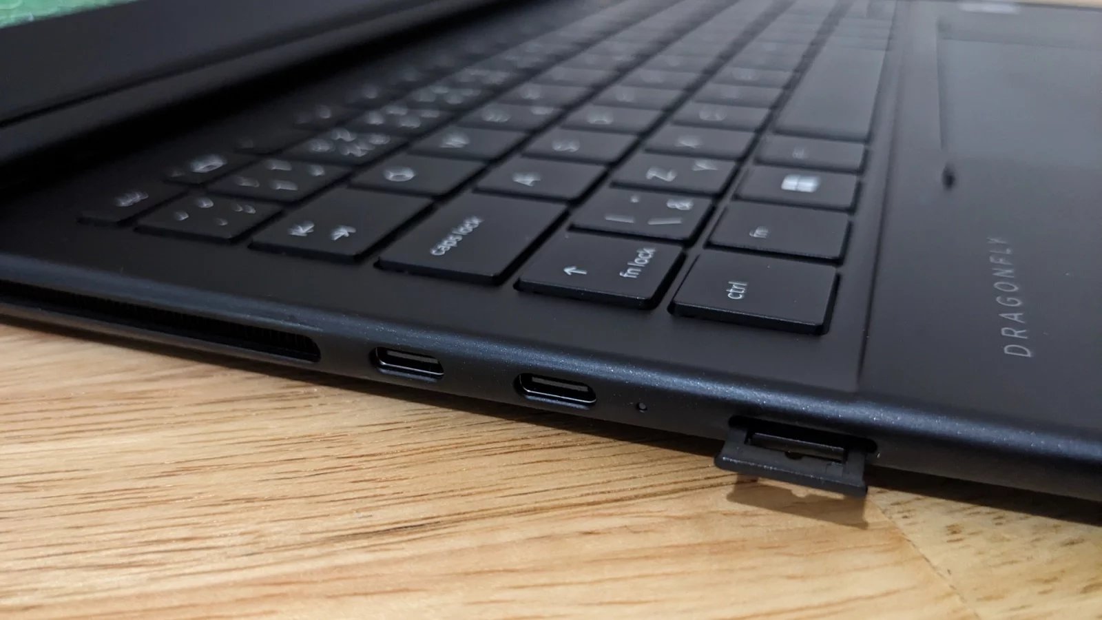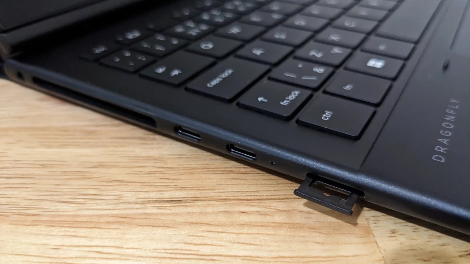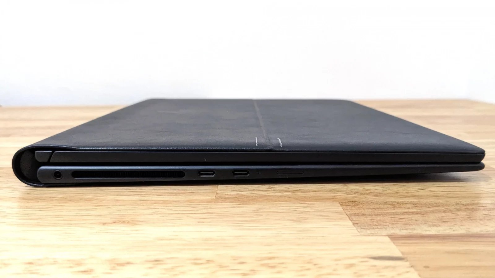 Fyzických portů není mnoho, protože se zkrátka nevešly. Na levé straně najdete dvojici USB-C (s podporou Thunderboltu 4), slot na SIM a sluchátkový jack, toť vše. K tomu sekunduje bezdrátová síť Wi-Fi 6E a modul pro SIM.