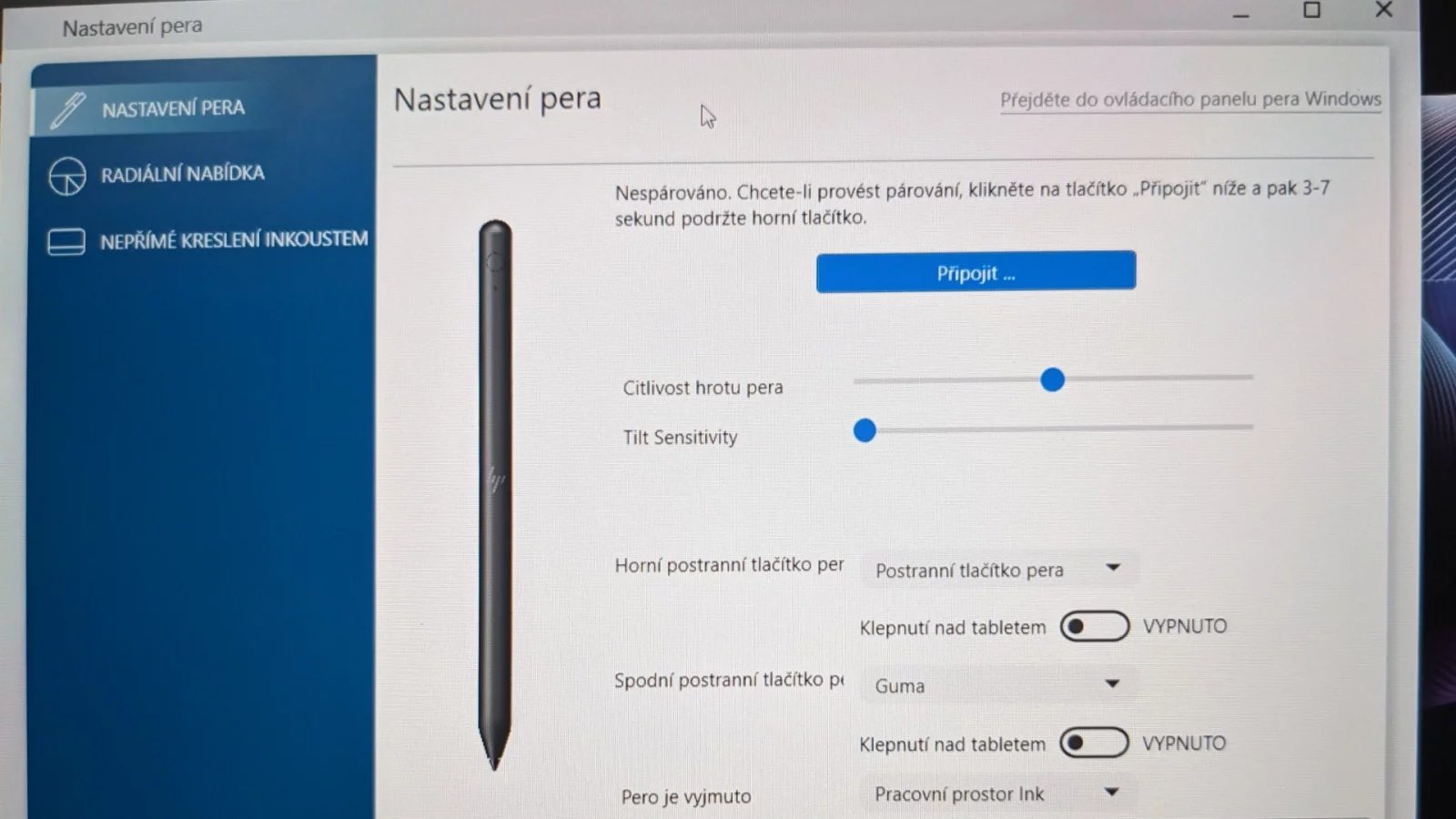 K notebooku dostanete pero, které magneticky drží na pravém boku. Pokud pero není zasunuté v těle, lze jej snadno ztratit. I když tady jej drží silný magnet.