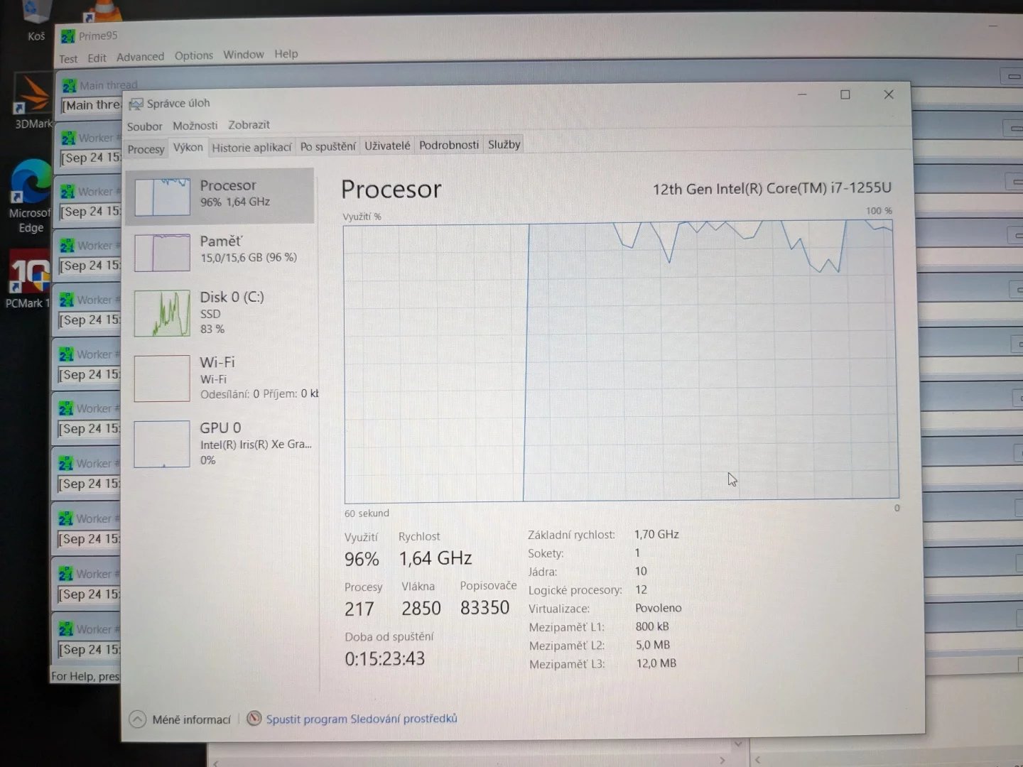 | procesor | Intel Core i7–1255U (12. gen Alder Lake) na 0,4–2,6 GHz (turbo 4,7 GHz), 2/4 a 8/8 jader, TDP 15 W |