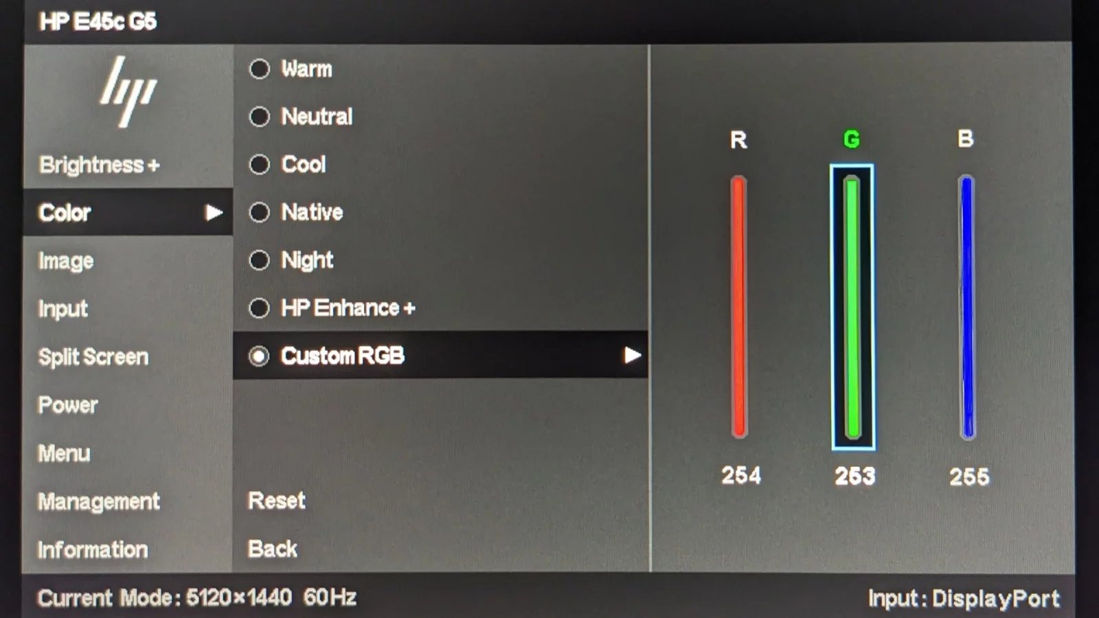 Po koupi a rozbalení tohoto monitoru si tedy nastavte Native a už jej neměňte :). Jedinou nevýhodu vidím v maximálním jasu, který je u Native 254 nitů, zatímco Warm nebo Neutral dosáhnou až na 400 nitů. Jenže u monitoru, který nebude provozován někde venku na slunci, je takový jas (na rozdíl od notebooků) už zbytečný. Ani u her jsem v prostředí kanceláře nepotřeboval více.