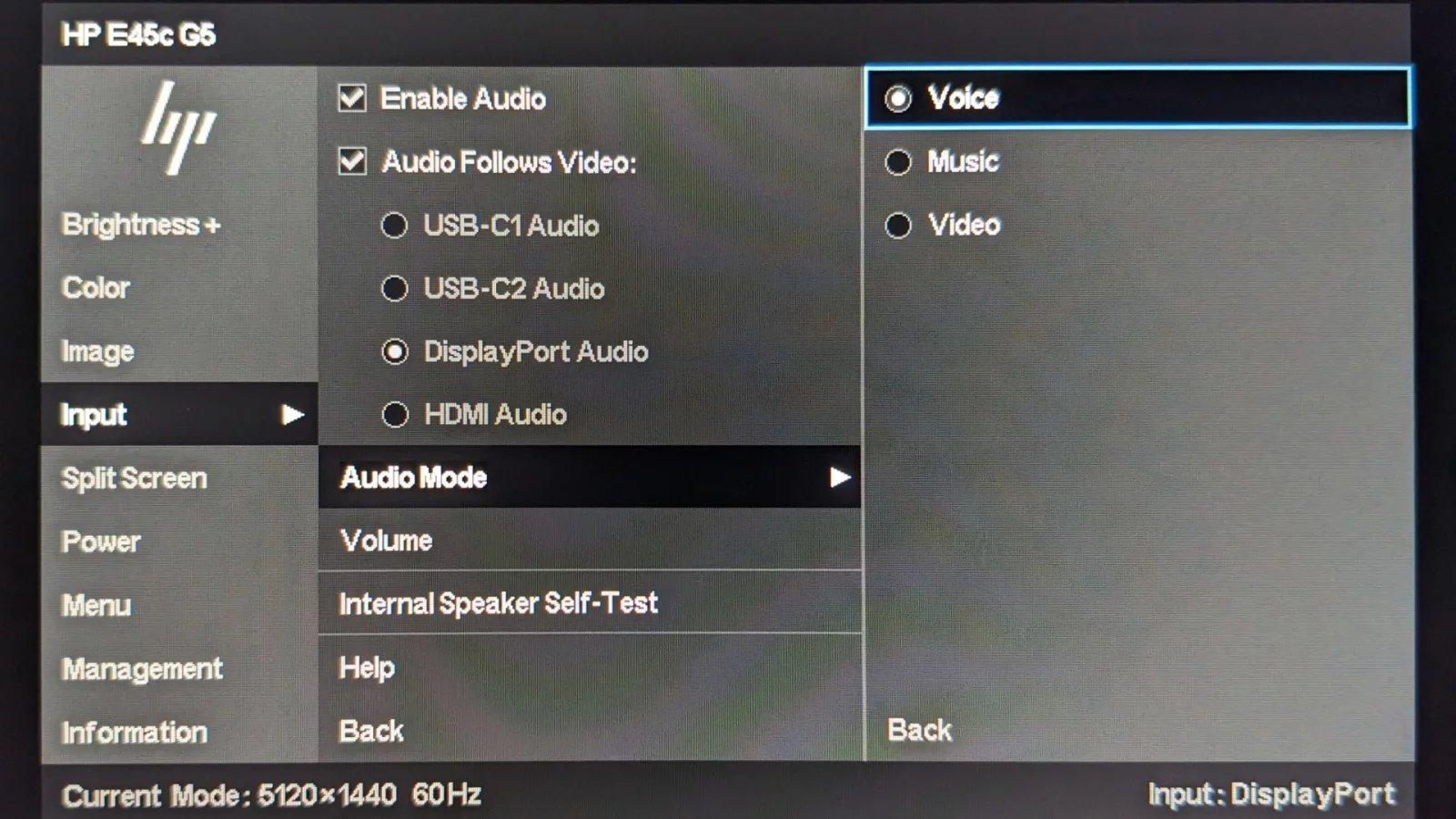 Vestavěné reproduktory mají 3 W a umožňují přehrávat zvuk ze všech tří vstupů (USB-C, DP i HDMI). V nastavení je položka Audio Mode, kterou jsem ponechal většinu času na „Voice“. Při změně na „Music“ se totiž příliš zvýrazní frekvence mimo ty hlasové a nezní to moc hezky. Po změně na „Video“ pak zní veškerá hudba, jako byste byli pod vodou.