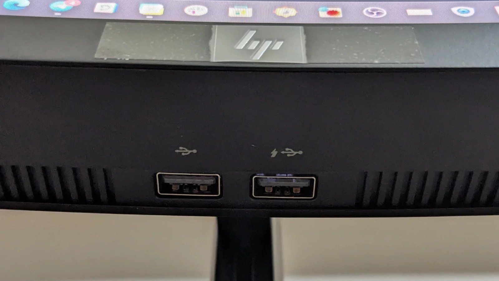 Přes USB-C lze notebook i napájet (100 W) a monitor potom funguje i jako rozbočovač portů poskytující RJ45 a čtveřici USB-A. Dvě jsou vzadu a dvě dole pod logem HP. Ani jedno umístění ovšem není moc komfortní (které na monitoru taky je?) pro občasné připojení zařízení, je to dělané spíše pro myš a klávesnici. Monitor dokonce umí takto napájet oba dva notebooky, jen už poskytne každému nejvýše 65 W.