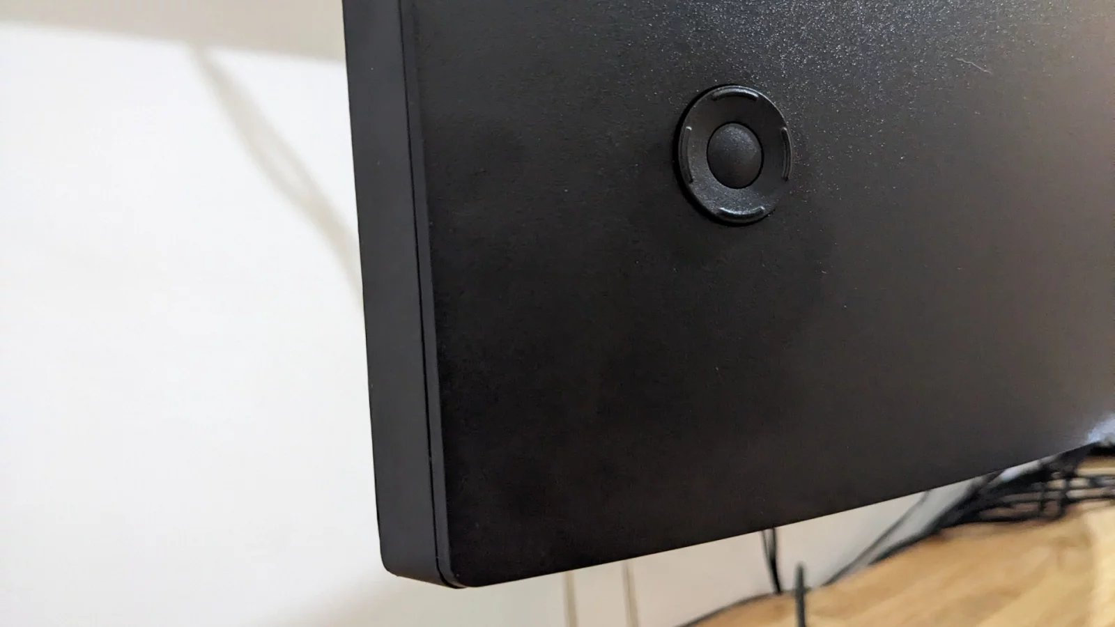 Na pravé straně zespoda je zapínací tlačítko s bílou indikační diodou, zezadu potom klasický joystick pro pohyb v OSD menu.
