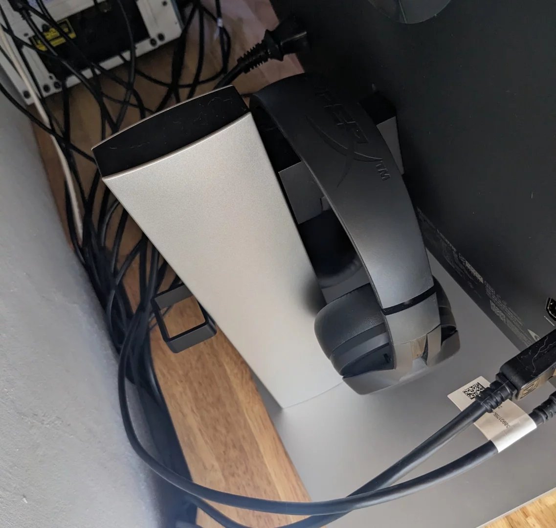 Pak je tu ještě naklopení dopředu a dozadu. Naměřil jsem 4,5° směrem dolů ke stolu a 18,5° nahoru, což je rozsah větší, než bývá běžně potřeba (HP uvádí −5 až +20°, ale já mám lepší úhloměr). Polohování je celkově výborné a není mu co vytknout. Stojan má na sobě i objímku pro vedení kabelů a je to také vhodné místo pro zavěšení velkých sluchátek.