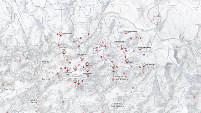 Do vyhledávacího pole zadejte termín upravené běžkařské trasy, případně rovnou přejděte na vaše oblíbená místa. Trasy se barví čtyřmi barvami podle aktuálního stáří úpravy (od aktuálního dne až po stáří více než týden). Stav běžkařských tras je možné sledovat v Krušných horách, Lužických horách, Jizerských horách, Orlických horách, v Jeseníkách, Beskydech nebo na Šumavě.