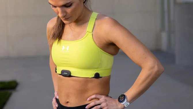 Druhou novinkou je hrudní pás a monitor srdečního tepu Garmin HRM-Fit. Jeho klipsny s připínáním jsou přímo dělané na to, aby pasovaly na sportovní podprsenky se střední a vysokou podporou.