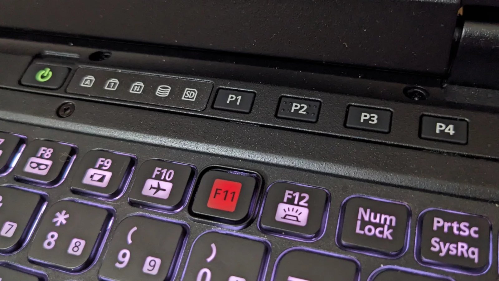 Klávesa F11 má netradiční provedení – popisek je červený a okolo tlačítka se nachází pevný rámeček, abyste jej nestiskli omylem. Tuto klávesu F11 lze nakonfigurovat jako „skrytý režim“ pro deaktivaci všech rádií, LED diod a displeje stisknutím jednoho tlačítka. Je to důležité zejména pro armádu