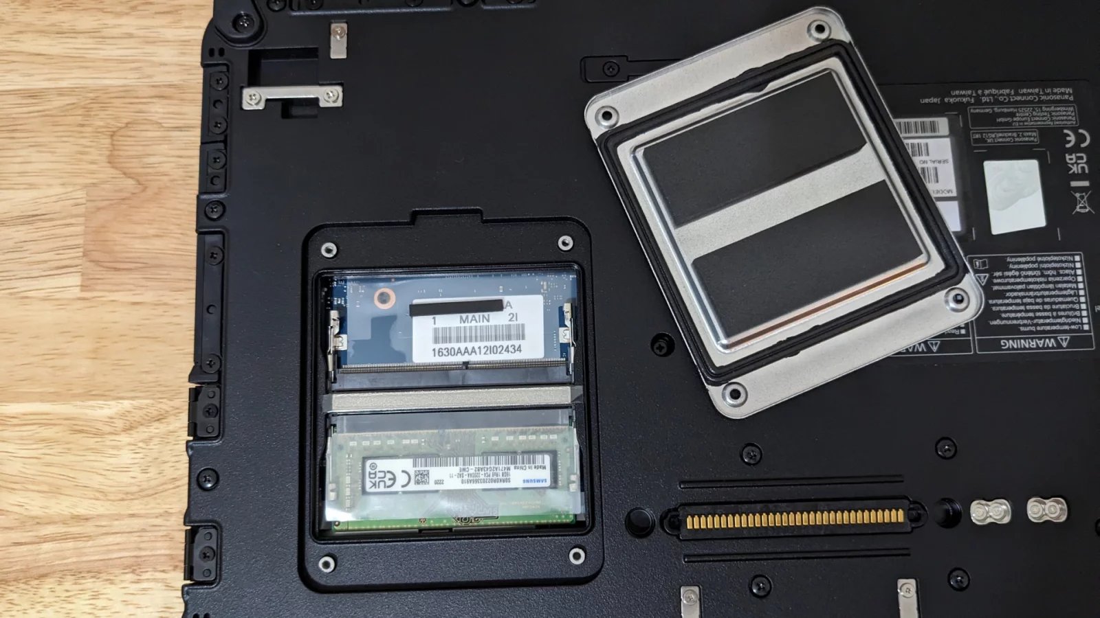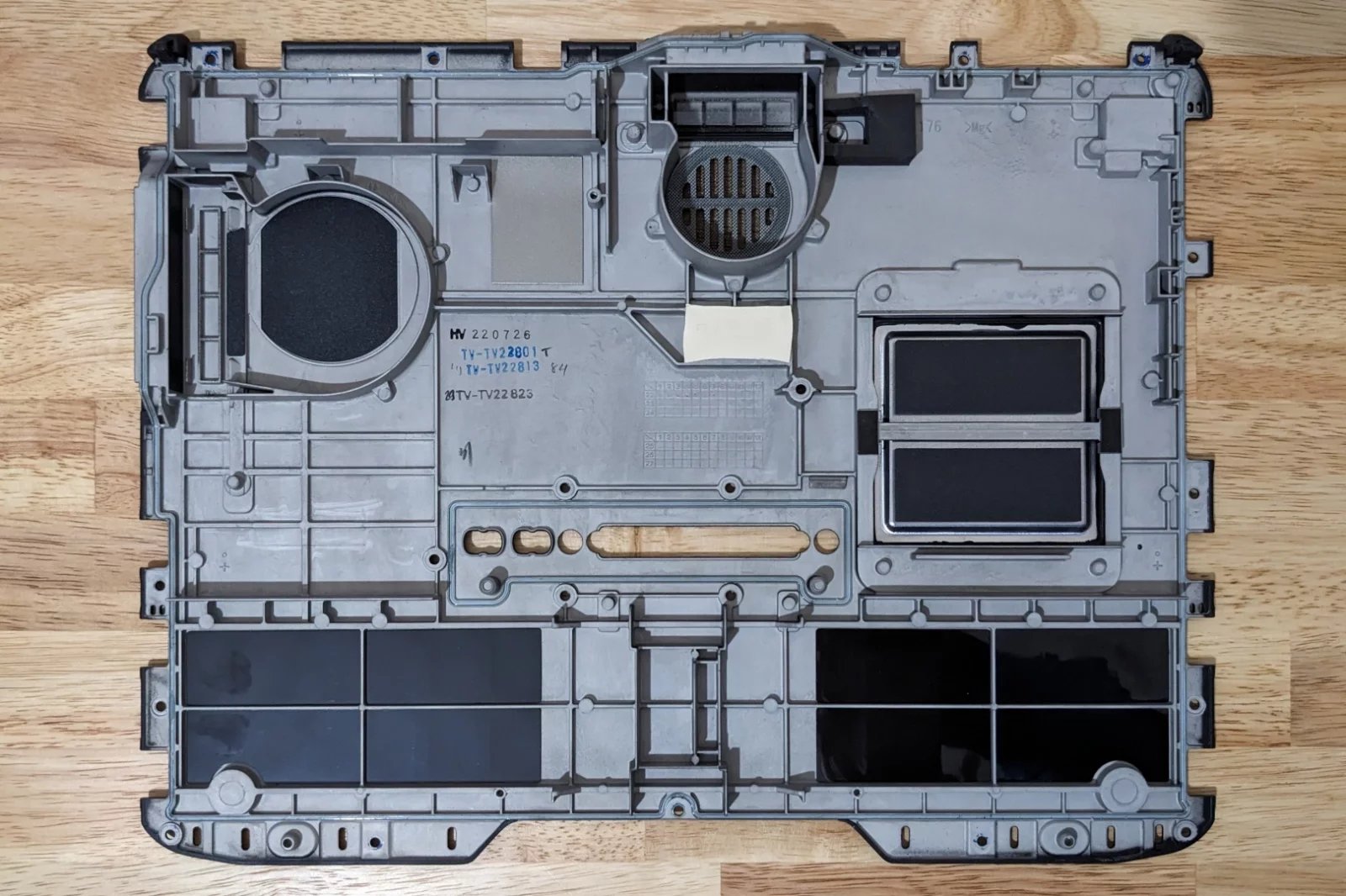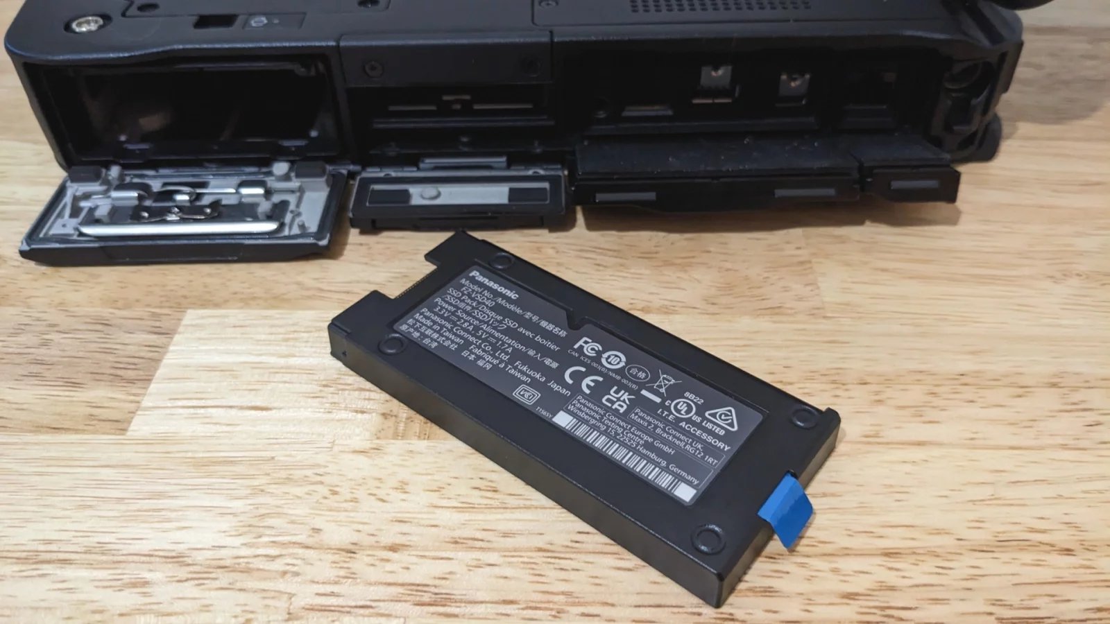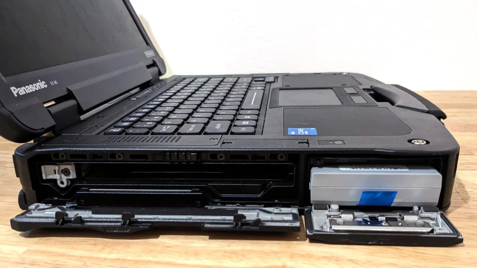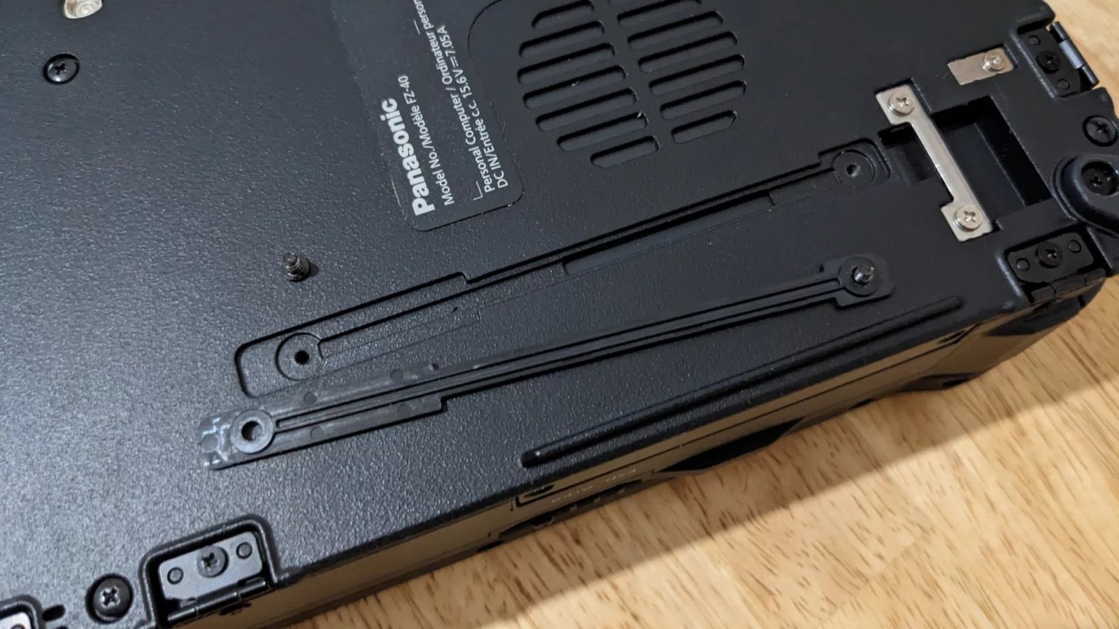 Akumulátory se osazují do slotů na bocích a přístup k nim je i bez použití šroubováku. Snadno lze vyměnit i celou klávesnici, ovšem Panasonic tento díl zvlášť neprodává a pro případnou výměnu musíte do servisu.