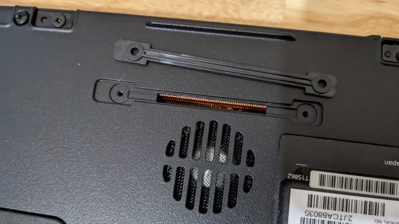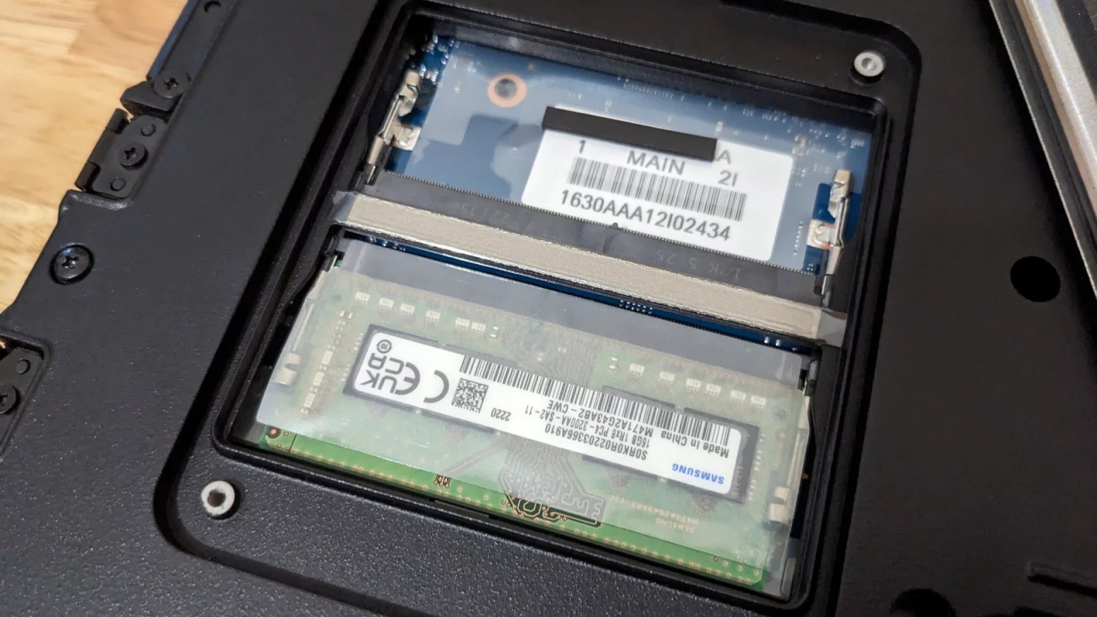 Aniž byste sundávali celý dekl, lze se po odšroubování malé krytky dostat k pamětem. Ze dvou modulů je jeden volný a 16 GB tak můžete snadno rozšířit na dvojnásobek.