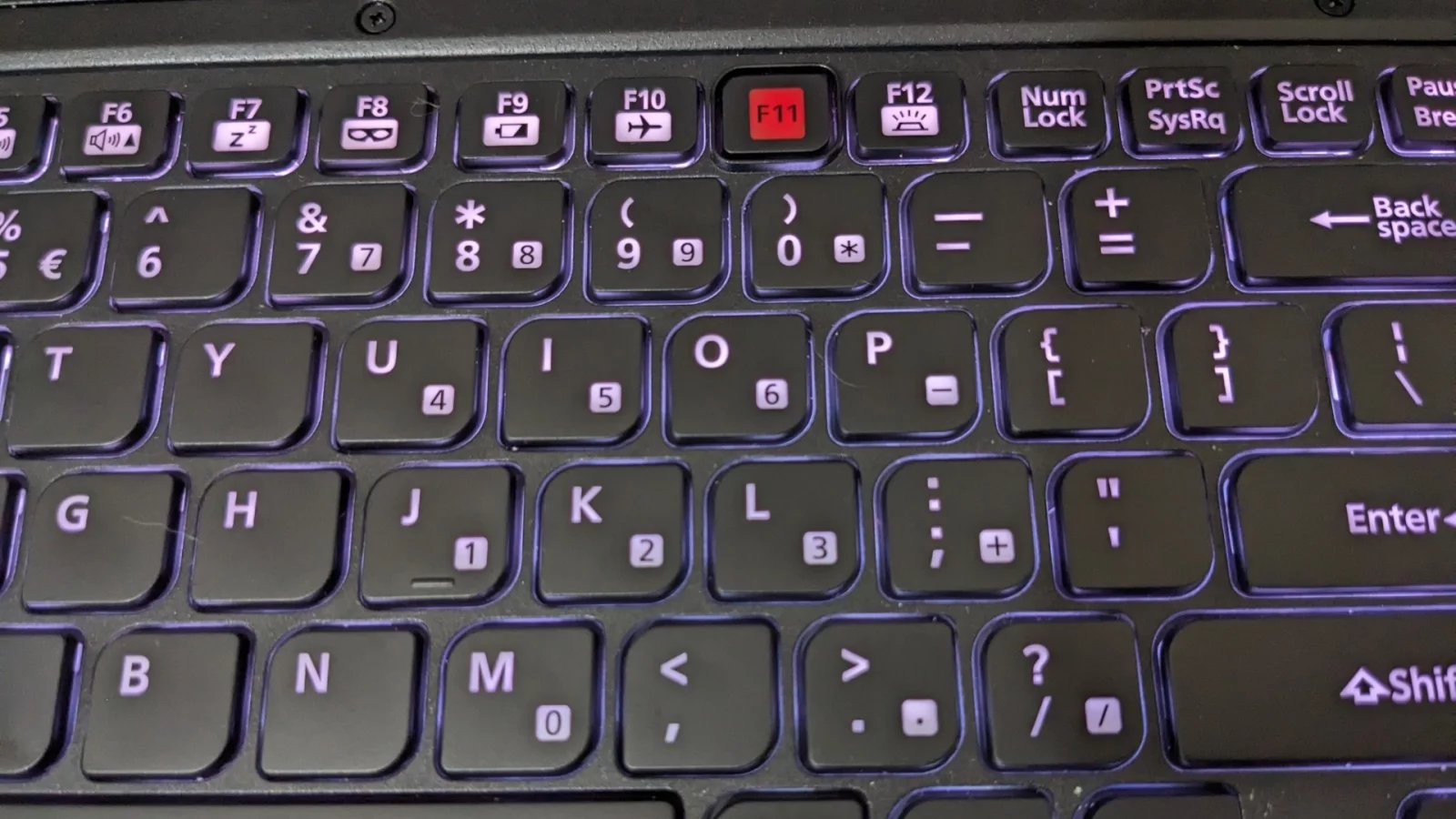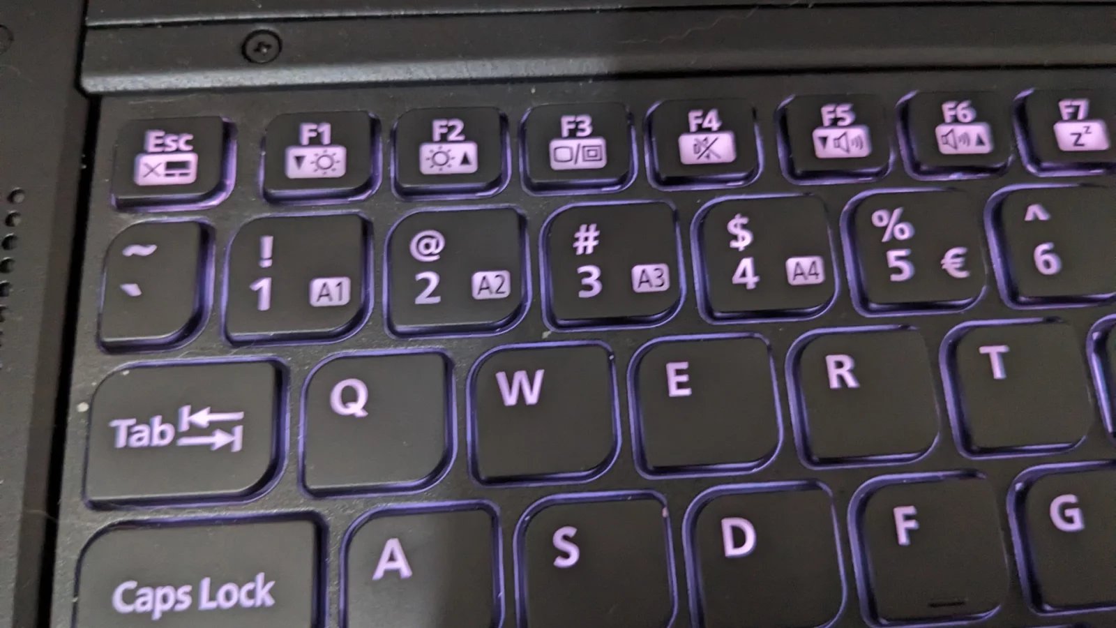 Napravo jsou potom čtyři programovatelná tlačítka, kterým můžete přiřadit stejné funkce jako pro A1 až A4. Třeba na spuštění nějaké aplikace či přepnutí displeje na noční teplé barvy. Věčná škoda, že na ně ale nelze naprogramovat změnu hlasitosti a jasu. Pod Fn+F12 najdete přepínání několika úrovní podsvícení klávesnice s nezvyklou zelenou barvou, můžete ji ale změnit na jinou základní barvu včetně bílé.