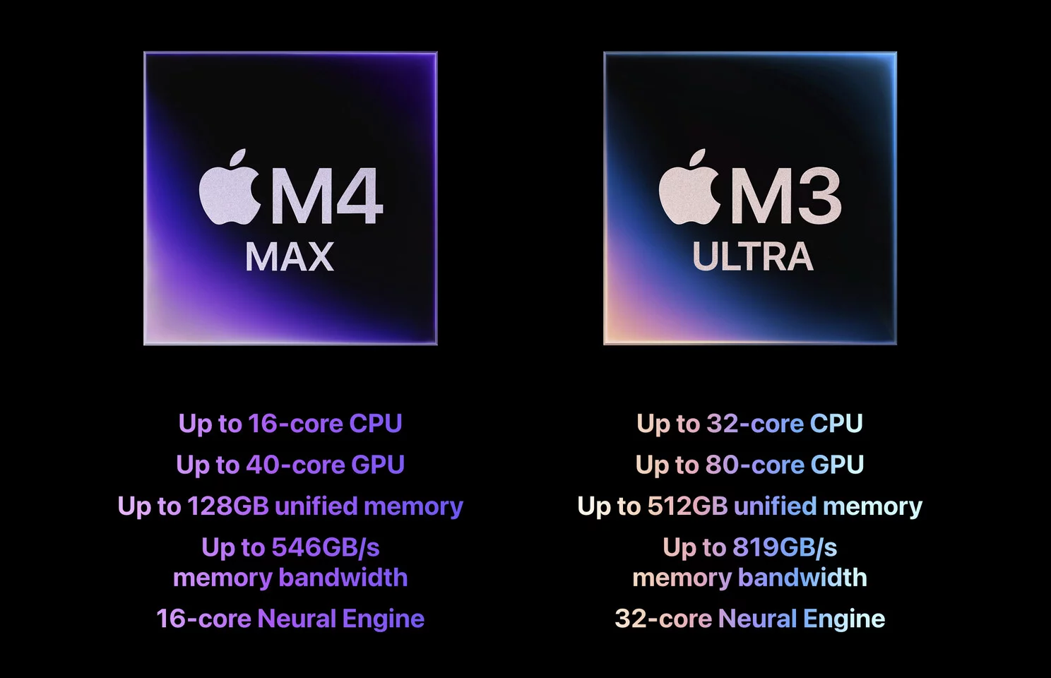 Apple M3 Ultra je podle všeho kombinace dvou procesorů M3 Max do jednoho balení. Výsledkem je, že obsahuje celkem 32 jader CPU – jde o 24 výkonných jader a 8 malých/efektivních jader. Procesor současně kombinuje paměťové sběrnice obou polovin, a měl by tak mít celkem 1024bitovou šířku s pamětí LPDDR5–6400, což dává propustnost 819 GB/s. Kapacita paměti u počítače Mac Studio s M3 Ultra může podle Applu být až 512 GB, což při cenách, které firma za DRAM účtuje, vyjde hodně draho.