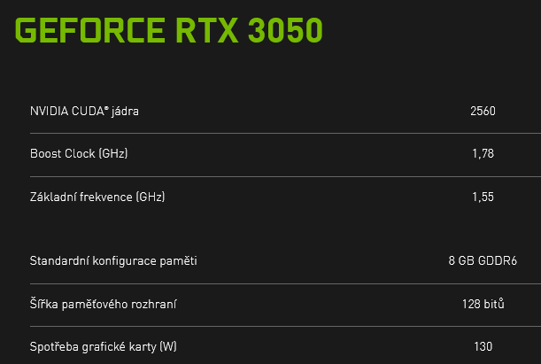 Parametry původní referenční verze GeForce RTX 3050 (8GB)