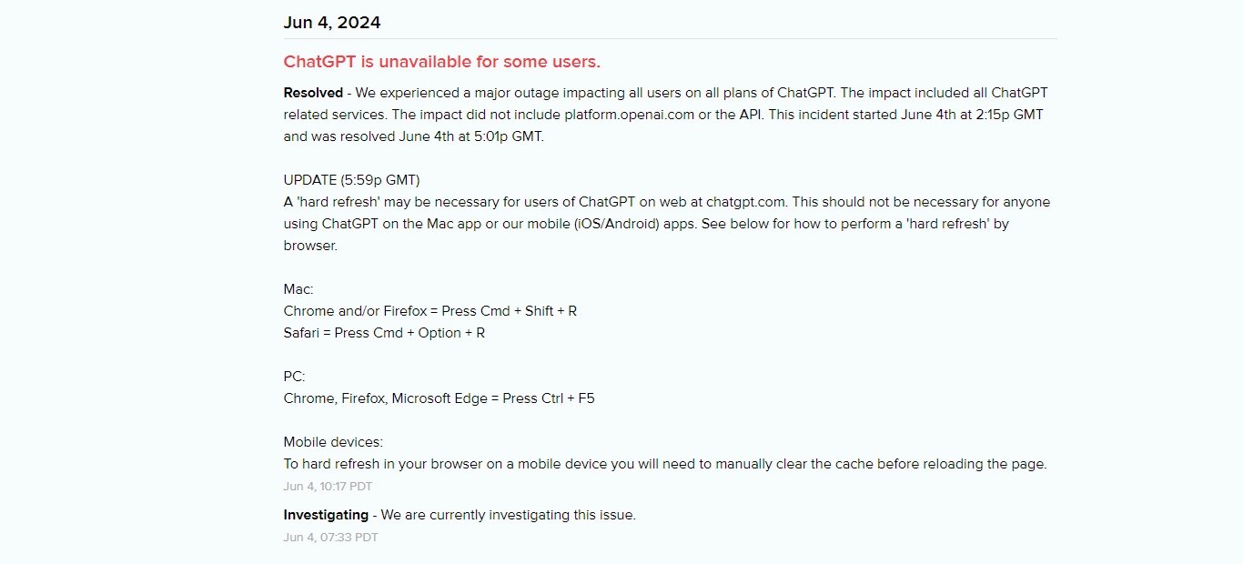 Pokud by vám problémy na webovém rozhraní ChatGPT stále přetrvávaly, doporučuje společnost použít „hard refresh“, tedy kompletní znovunačtení konkrétní stránky. Při problémech na mobilních zařízeních by mělo stačit opětovně načíst stránku, případně vymazat mezipaměť prohlížeče.