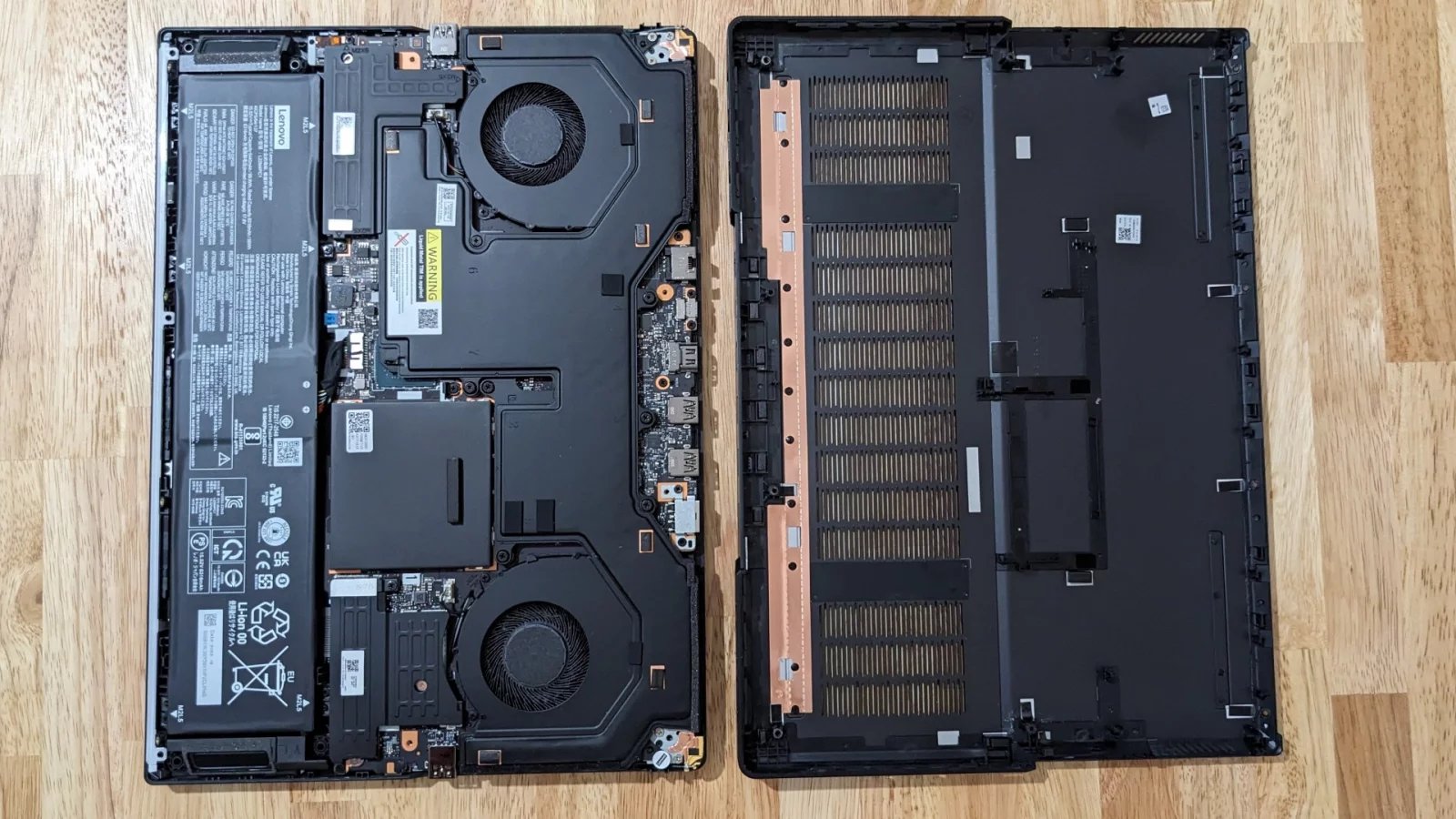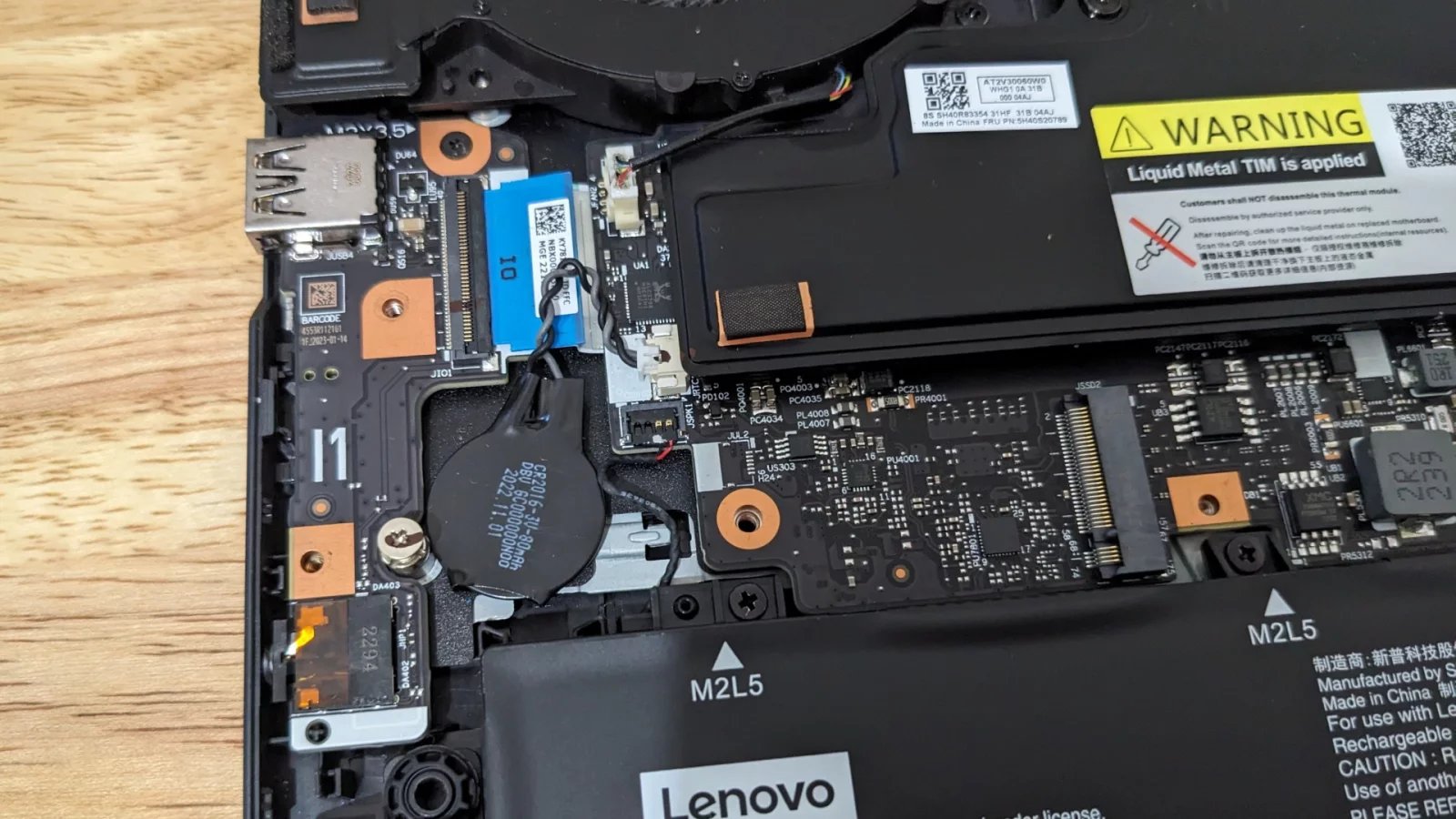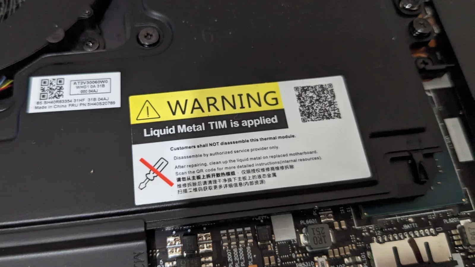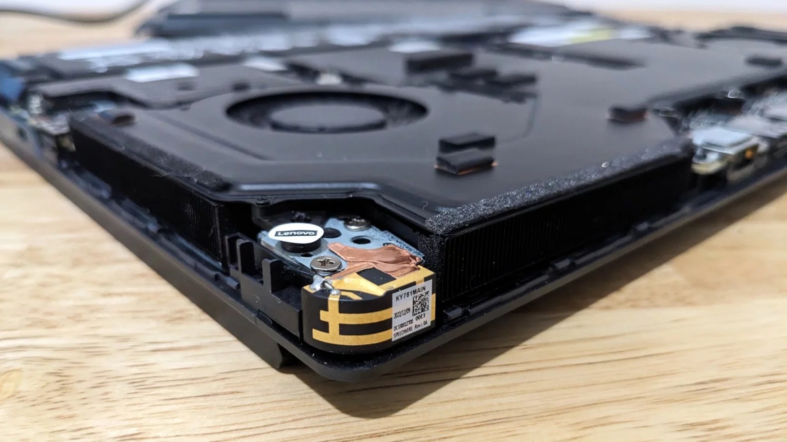 Spodní dekl je trochu těžší správně odcvaknout. Pod ním na mě vykouklo zakrytované chlazení (Lenovo mu říká Coldfront 5.0), které si tak nejde dost dobře prohlédnout. Lenovo zde varuje štítkem, abyste plechy nesundávali.