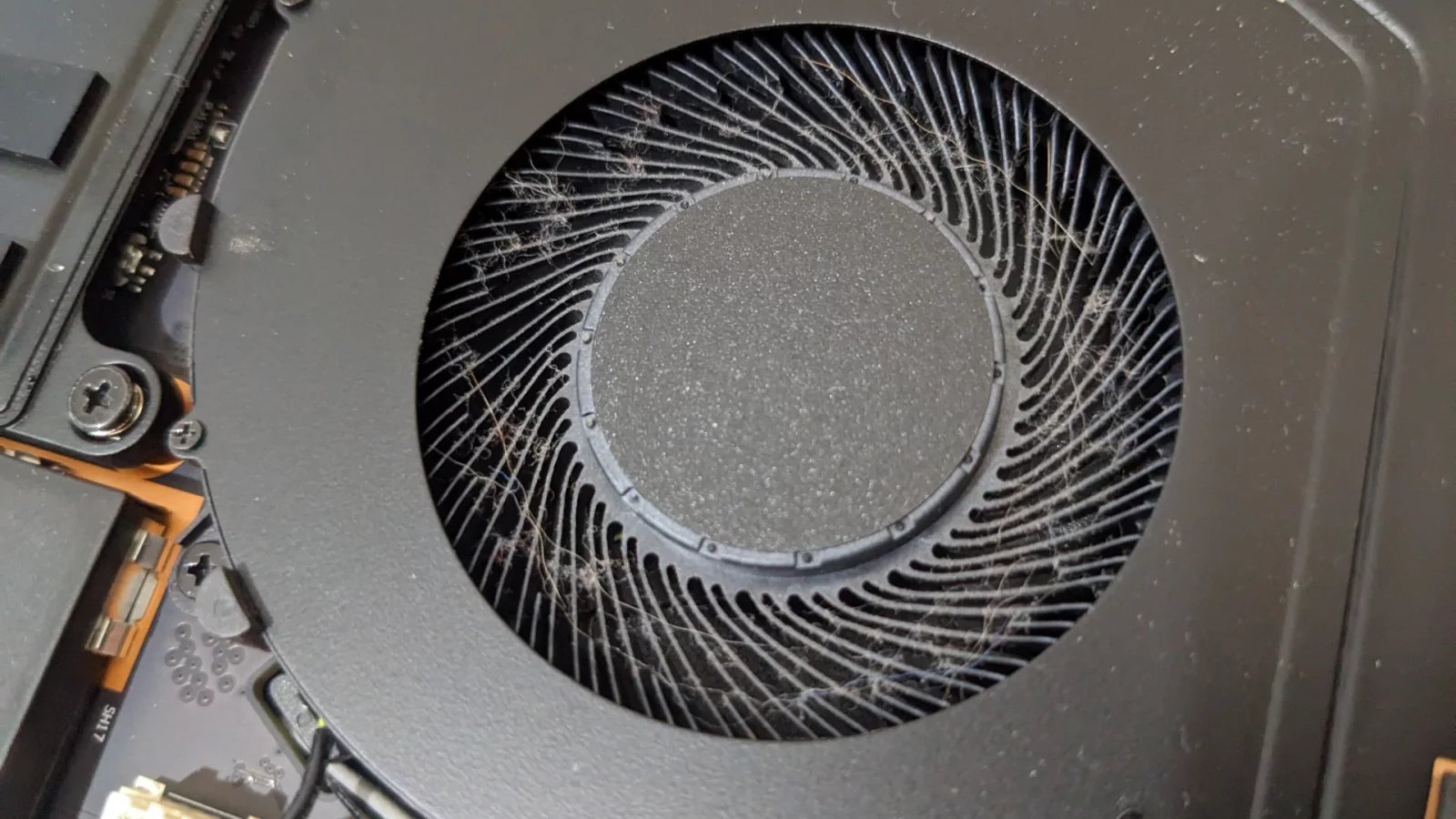 Pod nimi jsou heatpipe rovnoměrně odvádějící teplo pomocí dvou okruhů čtyřmi směry. Na detailu si lze všimnout prachu v lopatkách po zhruba dvoutýdenním provozu.