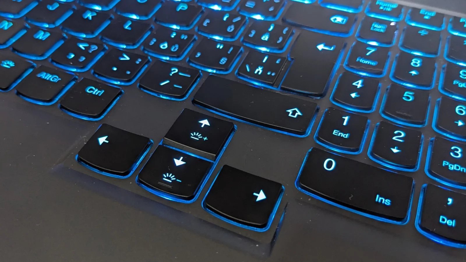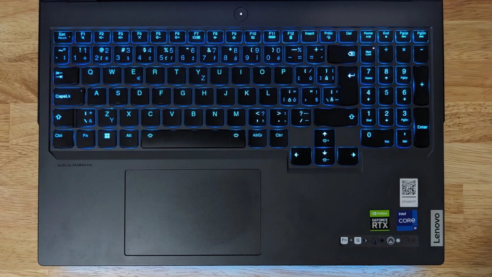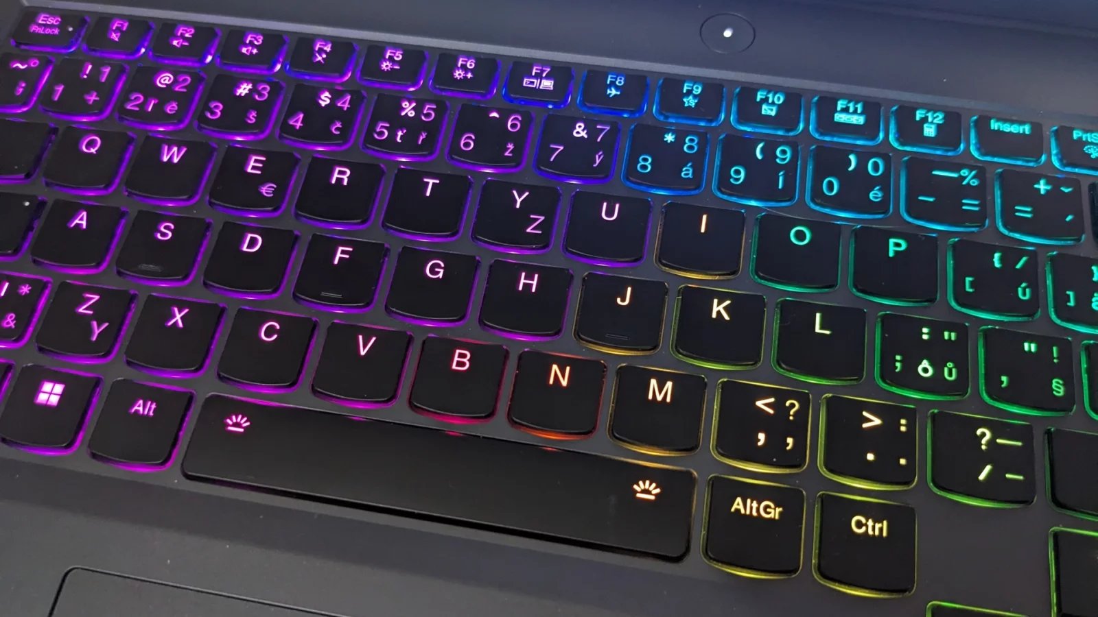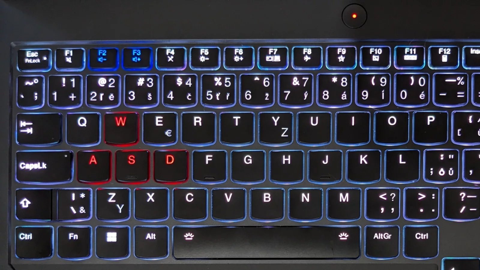 Lenovo standardně dodává klávesnice typu ISO s českou diakritikou. Podobně jako u ThinkPadů i tento herní Legion má výbornou ergonomii a pohodlně tvarované plošky tlačítek. Spolu s příjemnou odezvou na stisk se mi na klávesnici psalo velmi dobře. Zapínací tlačítko umístěné uprostřed nad klávesnicí bohužel neobsahuje čtečku otisků (a pro přihlášení k systému nelze použít ani webkameru). Indikační diody najdete na klávesách Esc (pro funkci Fn Lock), CapsLock i NumLock.