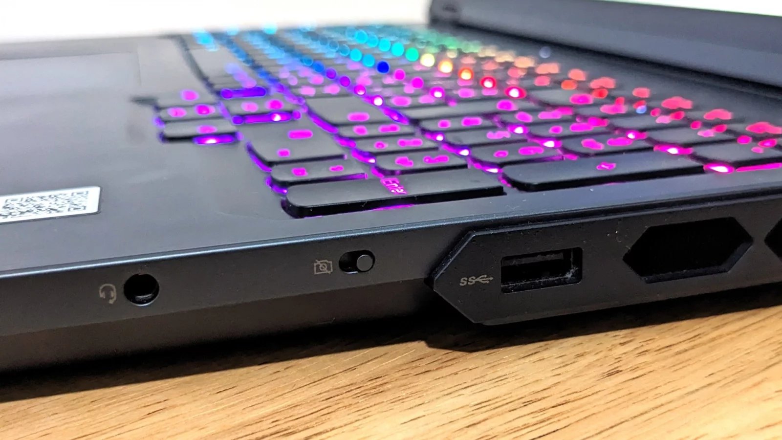Porty najdete po stranách i vzadu. Levý bok obsahuje USB-C verze 4 s podporou Thunderboltu a vedle klasické USB-A 3.2. Pravý bok další USB-A 3.2, sluchátkový jack a zámek webkamery. Ano, klasická posuvná krytka by samozřejmě byla lepší.