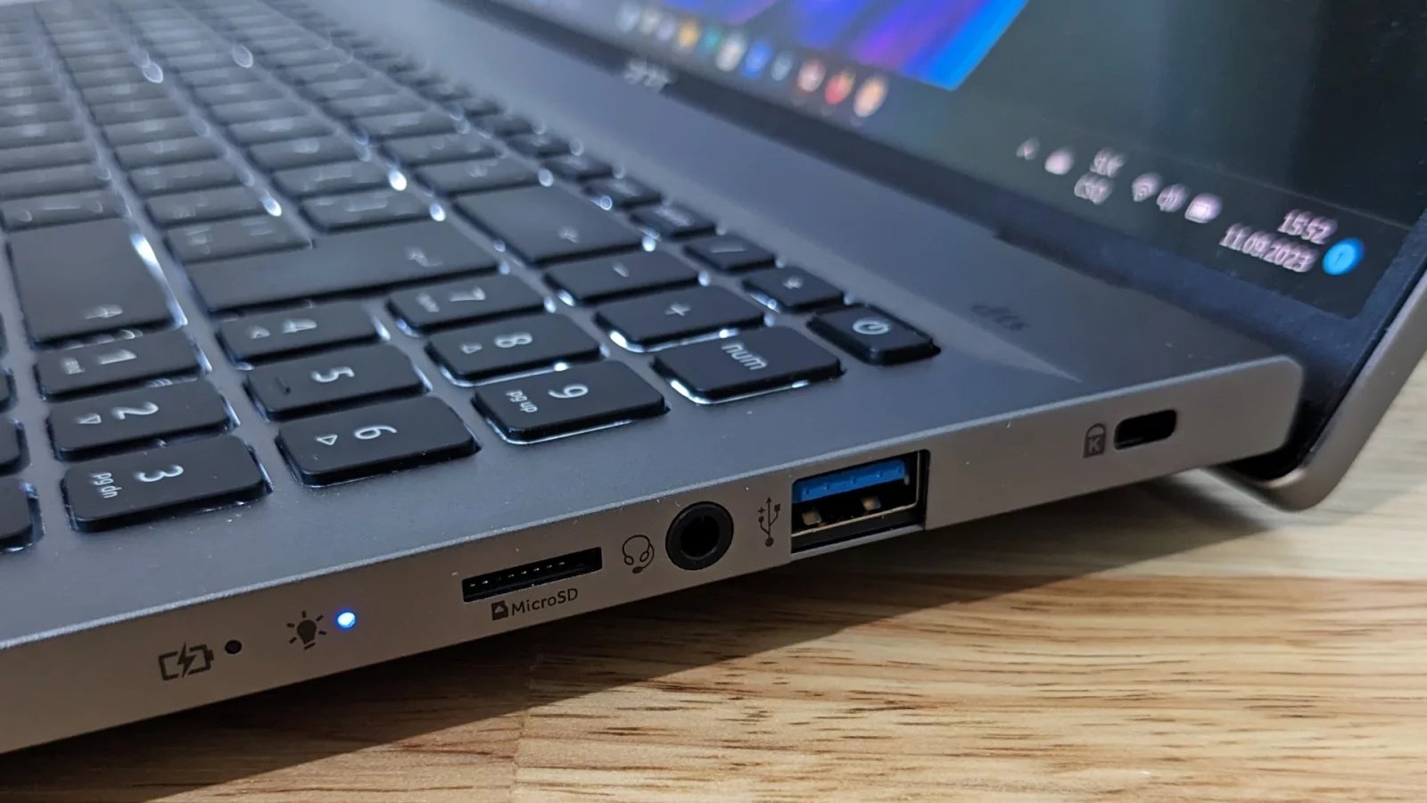 Vedle nich je tu dále HDMI 2.1, slot na microSD a jack. A samozřejmě i dva klasické USB-A standardu 3.2 Gen1. Čtečka karet je však vnitřně zapojena na rozhraní USB 2.0 a dosahuje výrazně nižších rychlostí. To v praxi ale moc nevadí.