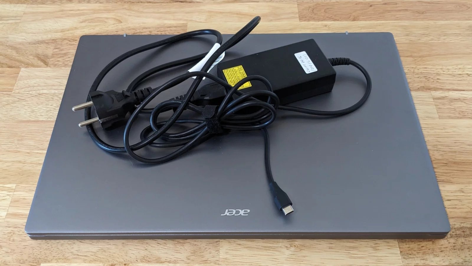 Adaptér má kapacitu 65 Wh a Acer v balení dodává 100W nabíječku (366 gramů) běžných rozměrů s konektorem USB-C. Tu využijete i pro jiná zařízení včetně smartphonů, na cesty si tak nemusíte brát nabíječky dvě. Při nabíjení mi měřák ukazoval ze začátku výkon i 95 W, každopádně za půl hodinky se dostanete na 61 % a za hodinu nabijete na kapacitu 90 %.