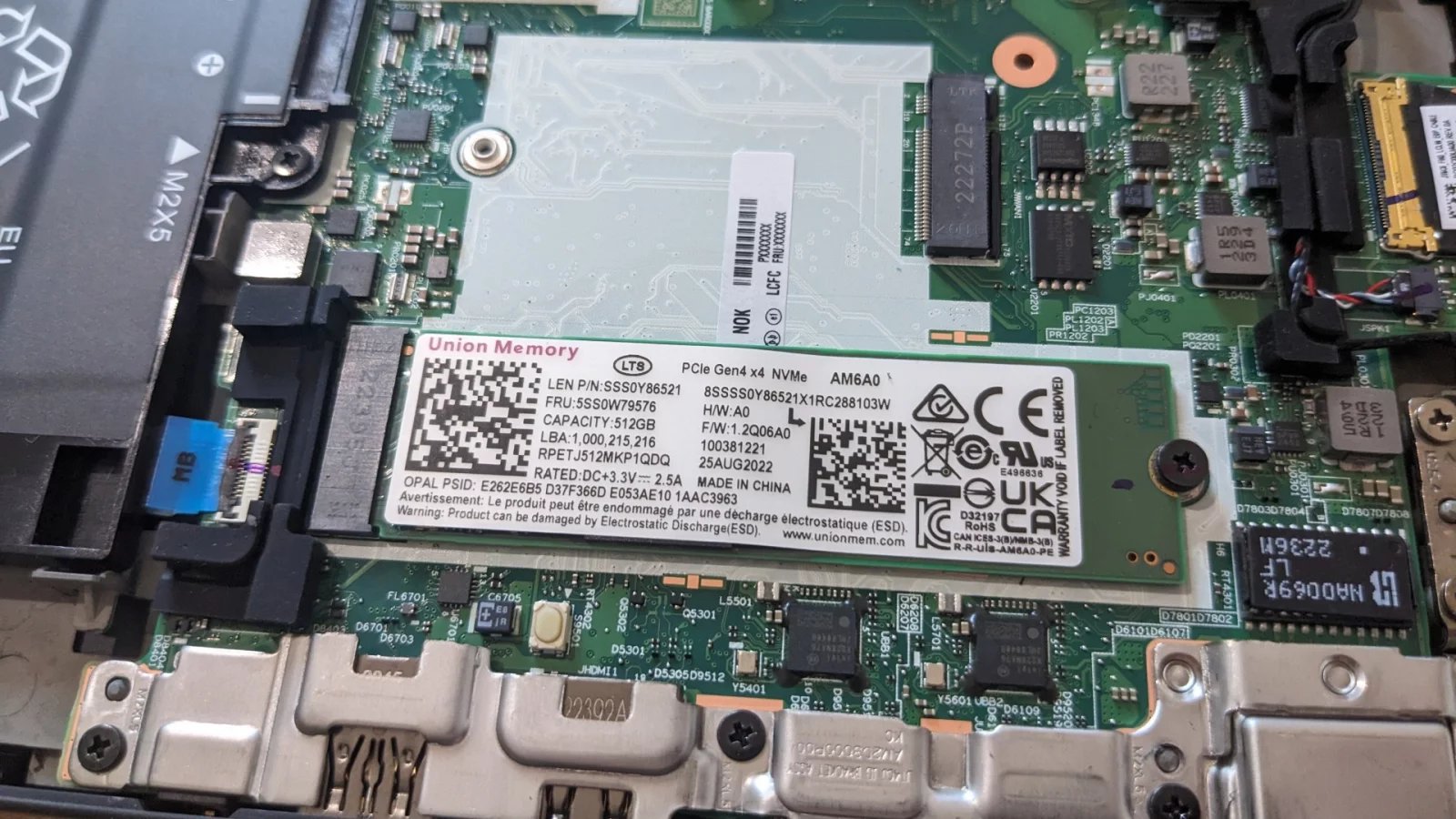 Volně přístupné je samozřejmě SSD, zde trochu netradiční čínské značky Union Memory o kapacitě 512 GB. Výhodou tohoto modelu je možnost přidat operační paměť. Je zde totiž jeden volný slot. V základu má testovaný kus 16 GB integrované paměti a pohodlnou možnost rozšíření na 32 GB. Čtečka SmartCard je v tomto případě jen „dummy“, tedy prázdný slot bez elektroniky.