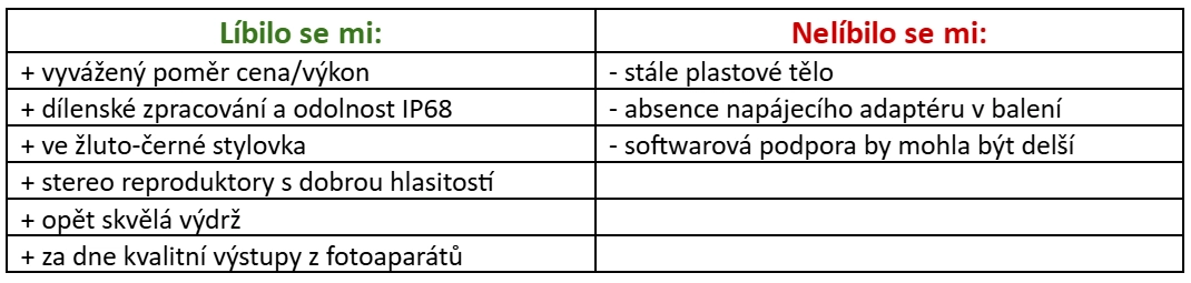 Sekundární 8Mpx ultraširokoúhlý objektiv se světelností f/2.2 a úhlem záběru 120° rovněž za dne podává slušné výsledky a překvapí kvalitou a ostrostí. S příchodem noci kvalita fotek exponenciálně klesá. Poslední 2Mpx makro je spíše do počtu. Přední 20Mpx selfie kamera svojí průměrnou kvalitou nikterak nevyčnívá a nenáročné uživatele nezklame, opět od ní nic víc nečekejte.