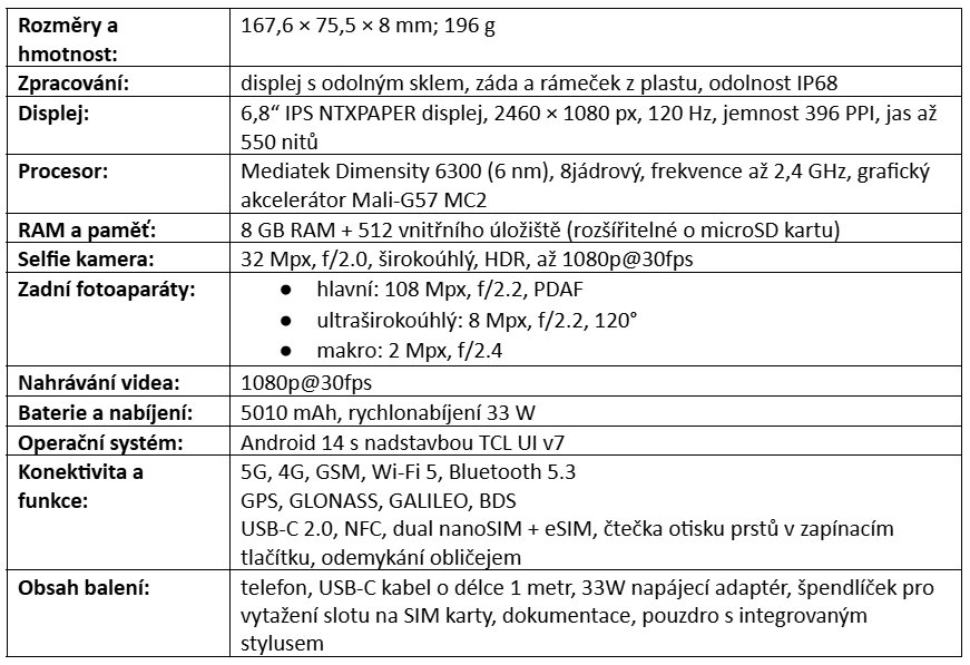 Parametry TCL 50 PRO NXTPAPER