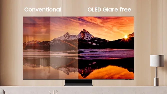 Velmi zajímavě vypadá nová technologie nazvaná OLED Glare Free, která by podle Samsungu měla výrazně omezit odlesky. Jde o antiodrazivou vrstvu optimalizovanou pro OLED. Právě OLED se totiž jinak typicky za nevhodných světelných podmínek chová jako zrcátko. OLED Glare Free bude specialitou letošních modelů.