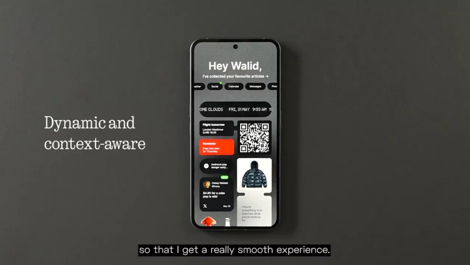 Své tvrzení dokládá tým Nothing několika prototypy a ukázkami ve videu. První ukázka vypadá na první pohled jako personalizovaný hlasový asistent založený ChatGPT integrovaný přímo v systému.