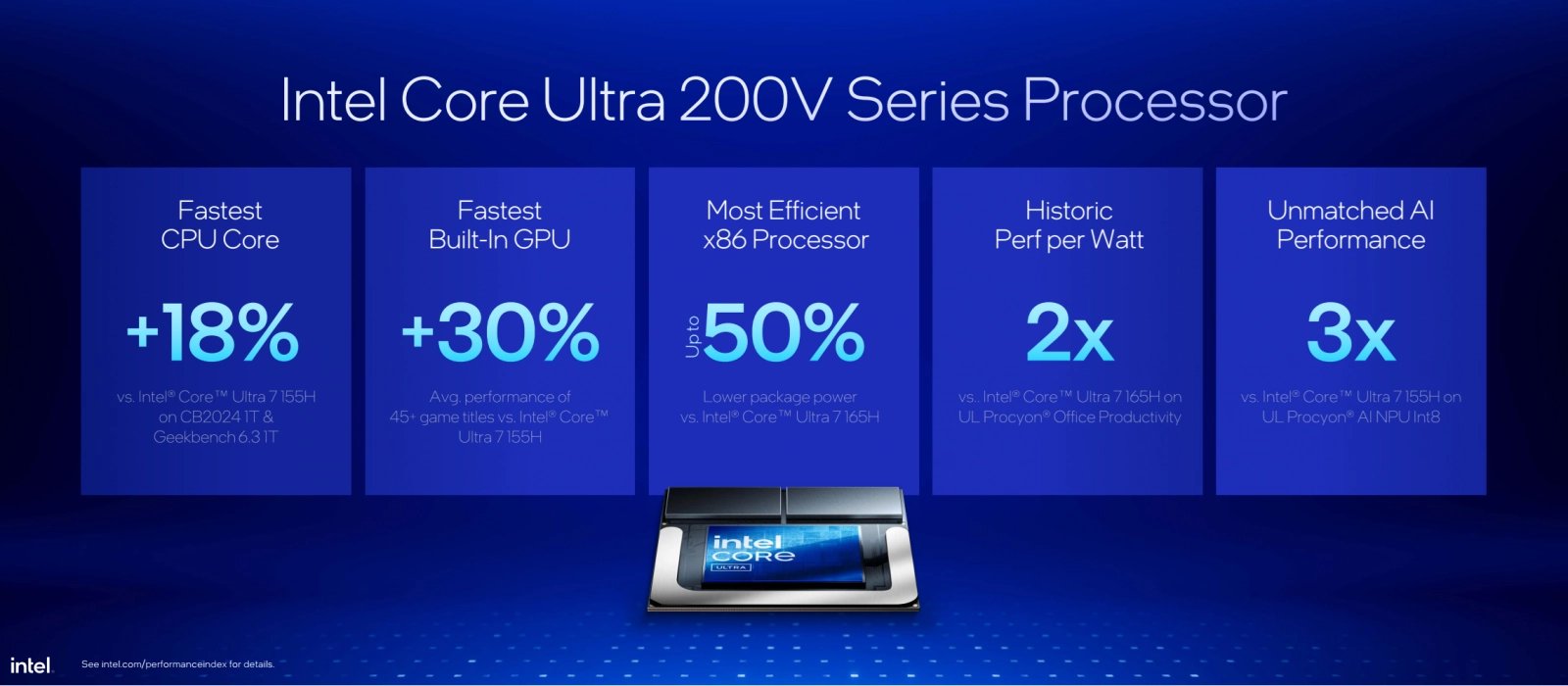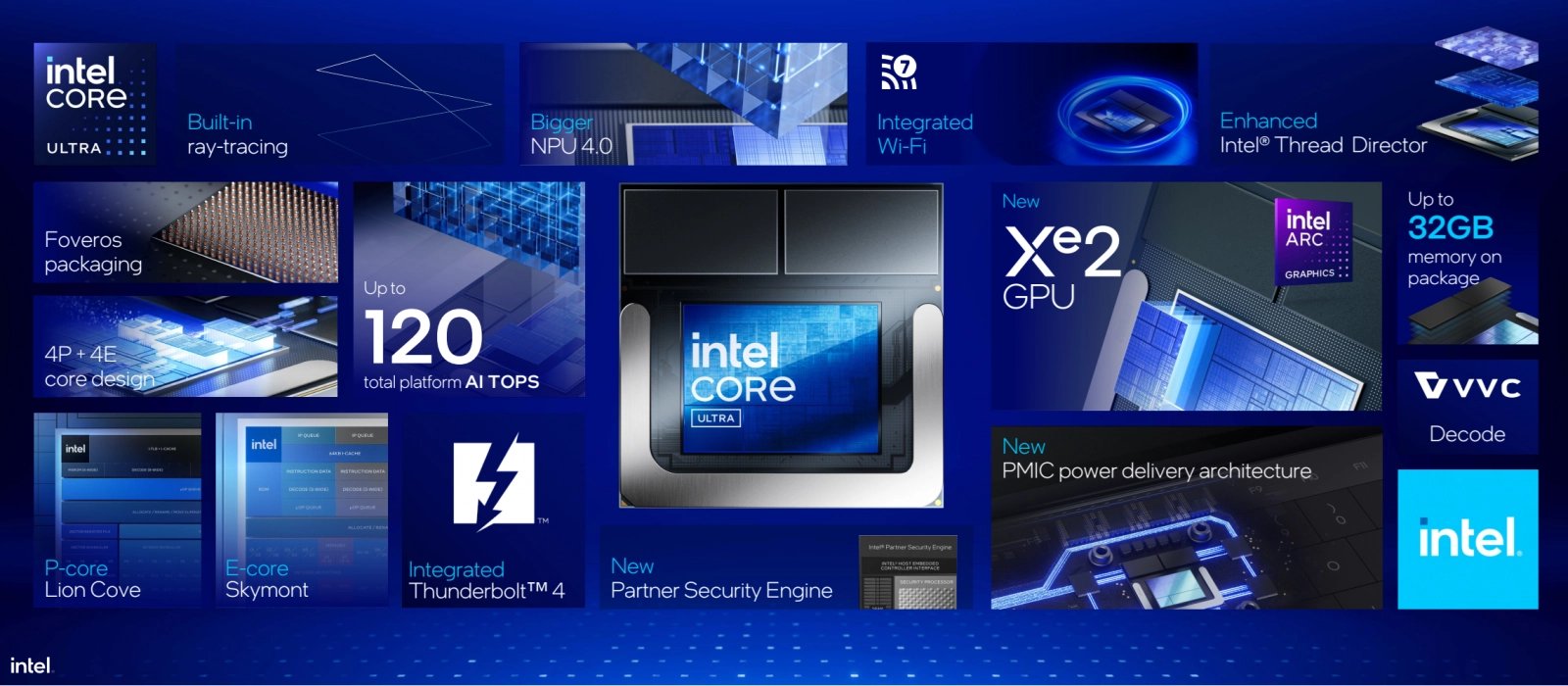 Lunar Lake je procesor, který je proti předchozím generacím Intelu úplně nový. Přináší nové výkonné architektury jak jader P-Core (tzv. velkých jader), tak jader E-Core (efektivních či tzv. „malých“), ale současně i novou grafickou architekturu Xe2 LPG, která bude v budoucích samostatných grafikách Intel Arc „Battlemage“. A také novou výrazně silnější NPU vyhovující požadavkům Microsoftu pro Copilot+ AI PC.