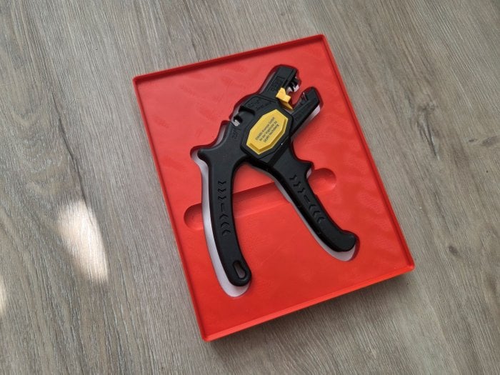 A takto už vypadá hotový organizér, který jsem na zkoušku navrhl a zkušebně vytiskl na odizolovací kleště Jokari s offset distance na medium a zapuštěnými otvory pro snadnější úchop. Osobně mi medium offset distance přijde až moc a při příštím tisku zvolím small.