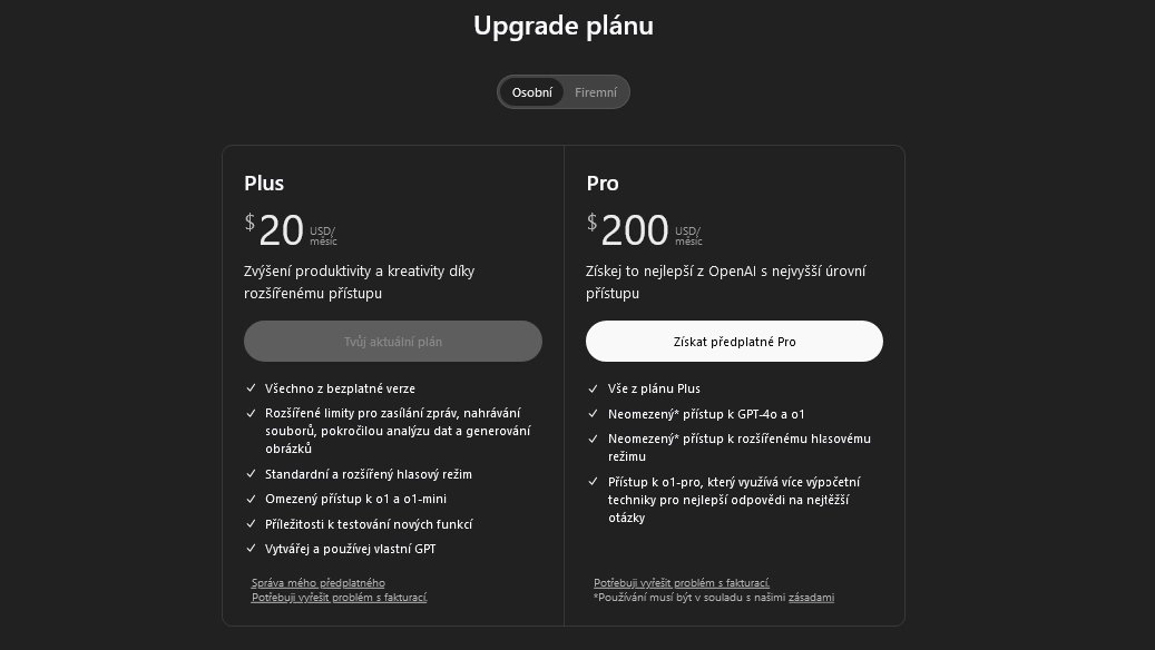 Co za to dostanete? Zejména neomezené používání modelů, přičemž o1 bude s označením o1 pro mít k dispozici více výpočetního výkonu. Má díky tomu nabídnout menší až žádnou chybovost.