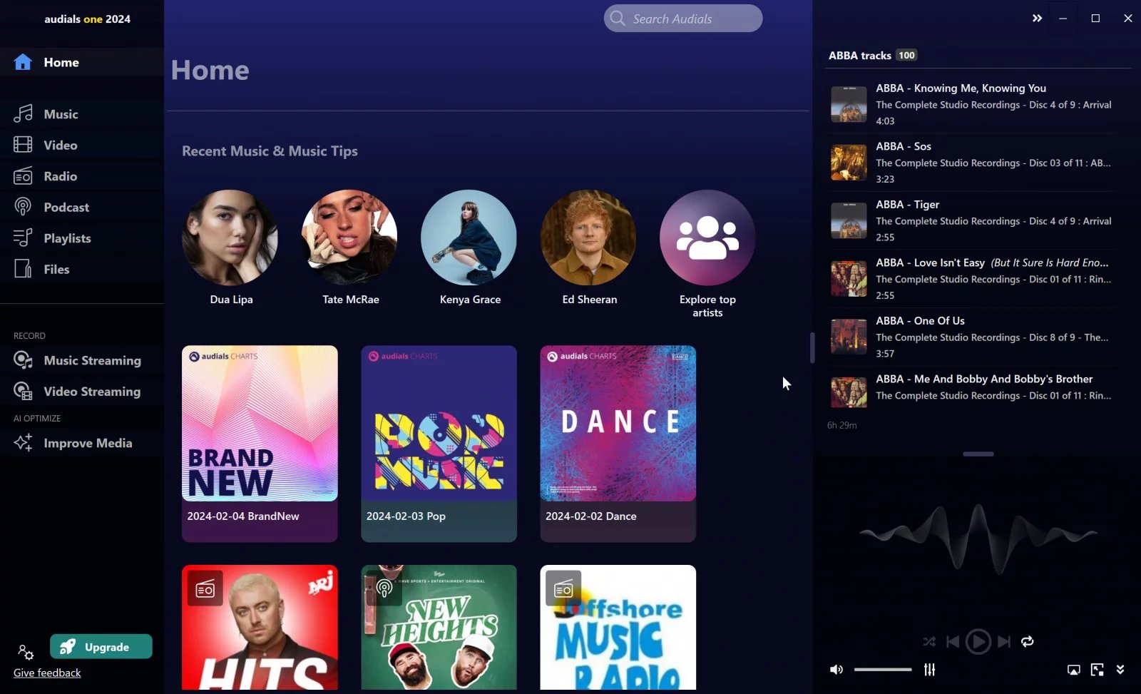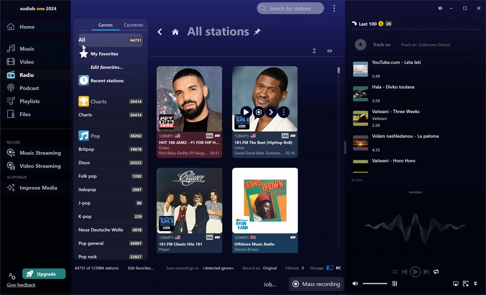 Připravit si můžeme vlastní knihovnu songů či klipů. Počet televizních kanálů a internetových rádií přesahuje těžko uvěřitelných 100 000 a stále roste. Prakticky stejně bohatá je i podpora nejrůznějších formátů, těch najdeme více než sto. Vše přitom při vysoké kvalitě, která je zaručena tím, že Audials nahrává rovnou z grafické karty, dostaneme tak původní kvalitu. A komu je to málo, součástí programu je i aplikace Audials Music, která stahované soubory dále zvukově vylepšuje a funguje jako slušný zvukový editor.