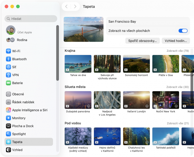 S dynamickými plochami na Macích přišel Apple v macOS Mojave v roce 2018. Tehdy výchozí plocha zobrazovala poušť, která se zároveň měnila podle denní doby. V současné době umožňuje systém nastavit desítky živých tapet, které jsou tvořeny především přírodními a městskými scenériemi pořízené dronem.
