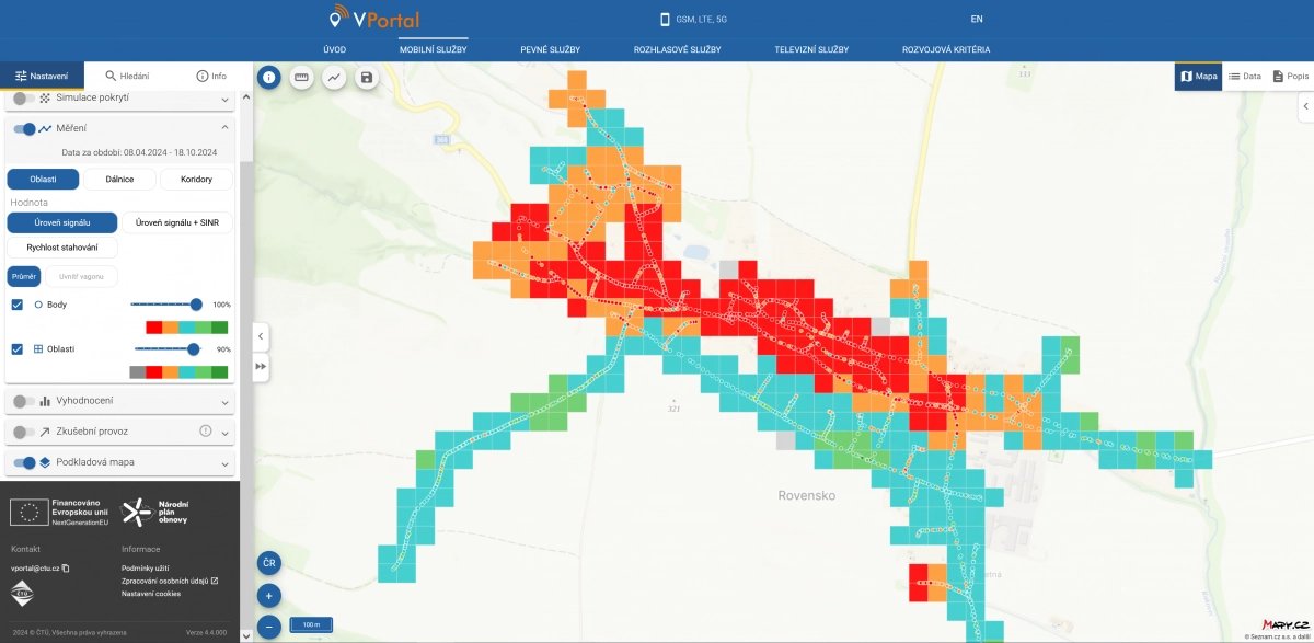 VPortal zobrazuje pokrytí mobilního i pevného internetu, DVB-T2 a digitálního rádia DAB+. Data má od operátorů i svá vlastní a nově přidal data pocházející od techniků ČTÚ z měření přímo v terénu. Díky tomu má ČTÚ mapu tzv. bílých míst, která jsou určena k dokrytí signálu mobilními operátory.
